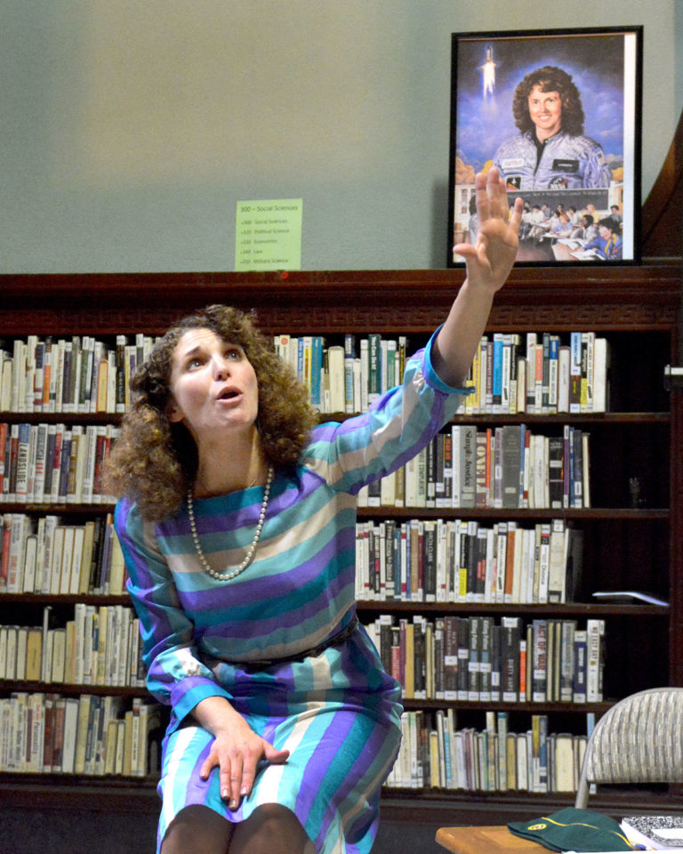 Performing as Christa McAuliffe for her friends and family on the 30th anniversary of the Challenger launch. Christa McAuliffe, the Teacher in Space, was on board the ill-fated Challenger shuttle, when it crashed less than 2 minutes into launch on January 28, 1986. After the program, McAuliffe’s best friend held Kalaora and thanked her with tears in her eyes. McAuliffe’s sister Lisa Bristol, along with her friend, said that when they closed their eyes and listened, it was as though Christa was in the room with them. No compliment is more powerful than that.