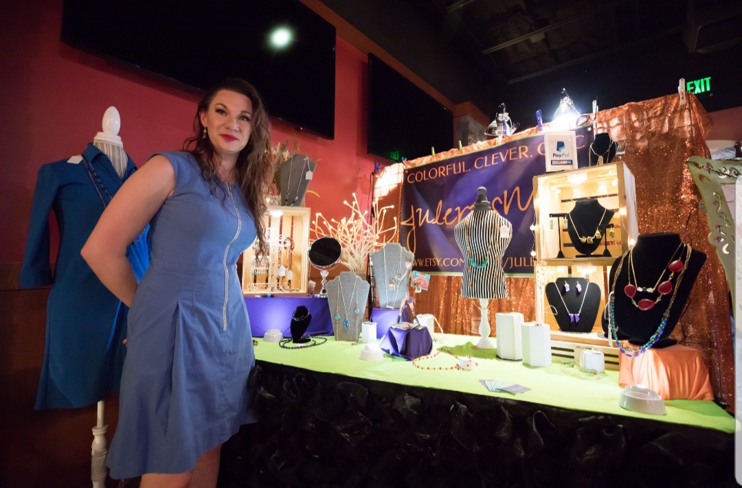 My business is JulerysMess, derived from jewelry/Julie/and lack of arts and crafts organization skills. I make jewelry, primarily earrings, bracelets, and necklaces, for now. I intend to figure out how to make rings eventually. I use a lot of semi-precious stones, crystals, and wood in my pieces. I hope to be able to use higher quality stones and materials eventually. I don’t specialize in anything just yet, I feel like that takes years, I have only been around for six months. And I don’t think I am known enough to be known for anything just yet, I’m the new kid on the block, hopefully in the future though! A lot of my pieces are considered statement jewelry. But what I think sets me apart a little, is that although they are statement, you can wear a lot of my pieces without making a scene. I use bright colors in just about everything, but they stay subtle or small enough to stand out. And what I am most proud of as a small business is simply that I have a small business. I am doing it. I am making 1-2 sales a week pretty consistently now. It’s pretty cool to see orders from people across the country; I still get excited every time I make a sale. That will never get old. It’s a great feeling knowing I am able to create something that other people enjoy.