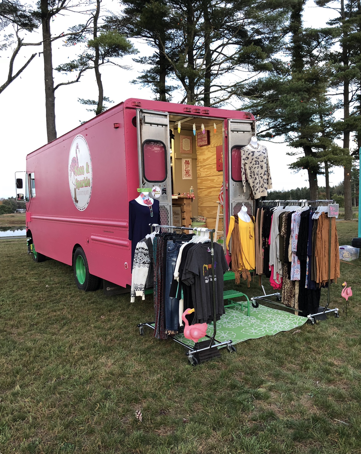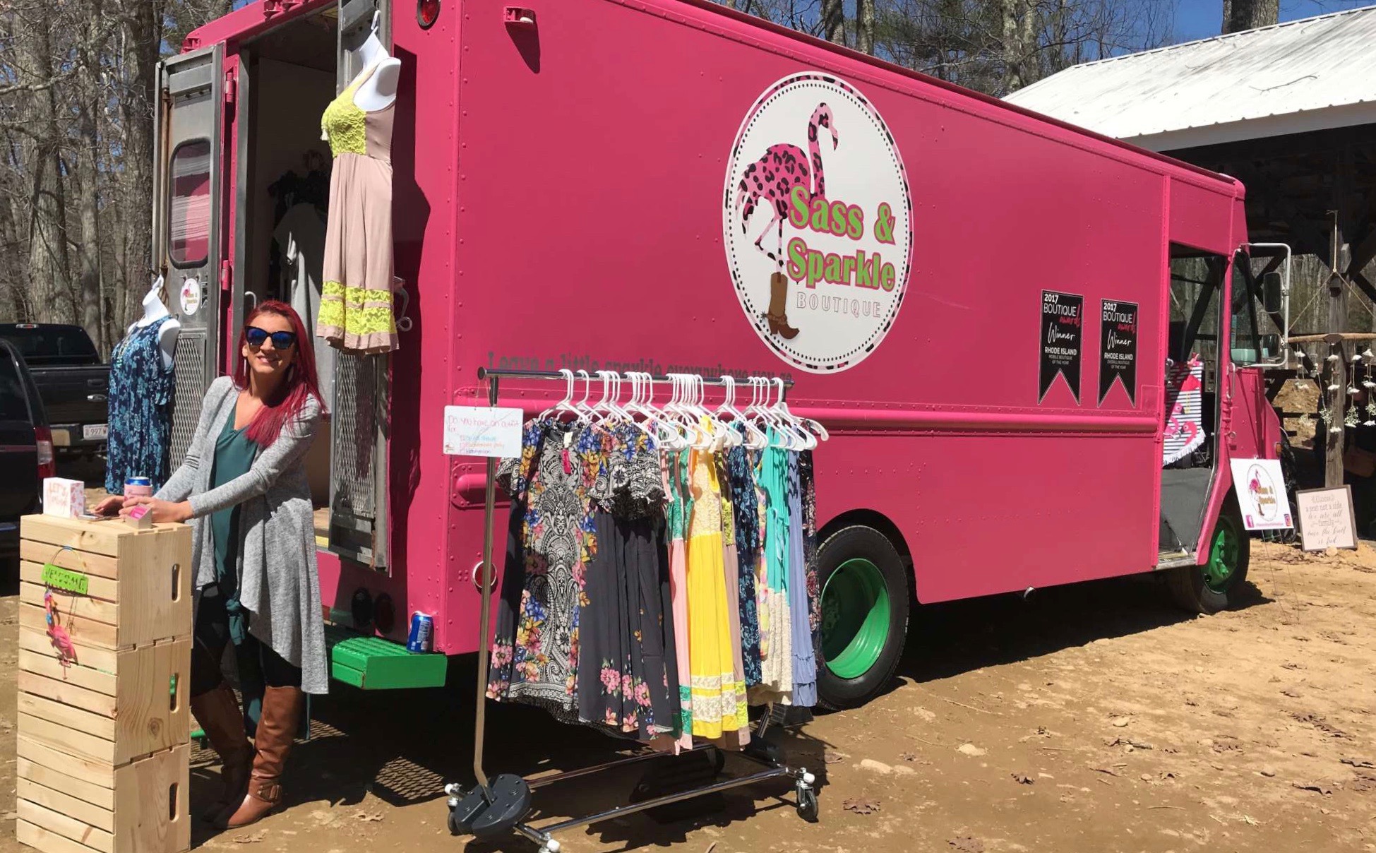 Sass and Sparkle Mobile Boutique is a shopping experience. We welcome you with open arms to shop our wide selection of clothing and accessories aboard our 23 foot truck, fully equipped with a dressing room. We carry sizes Small-3X. We take the time to get to know our customers and help you to put together the perfect outfit for whatever type of event you are attending.