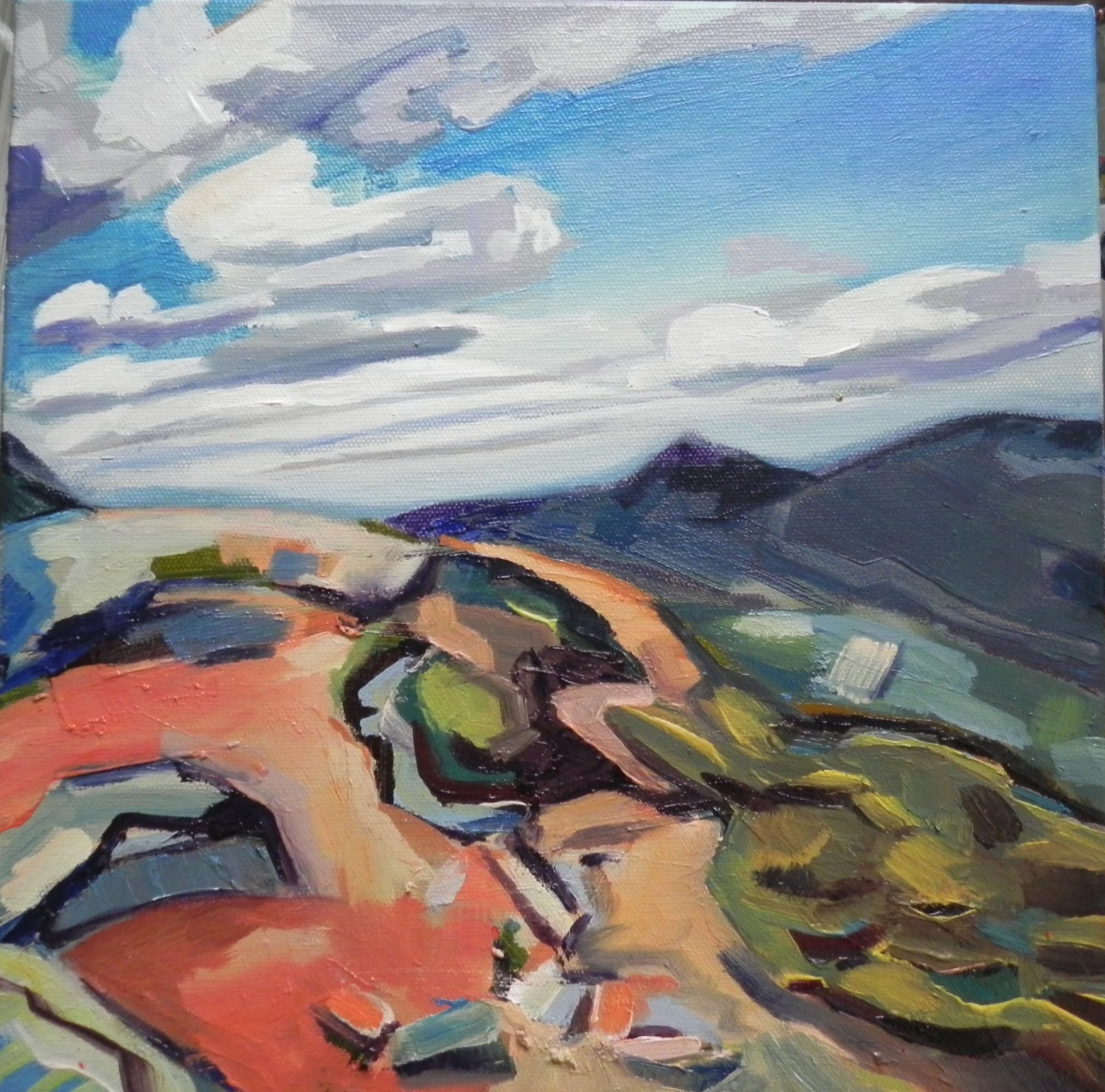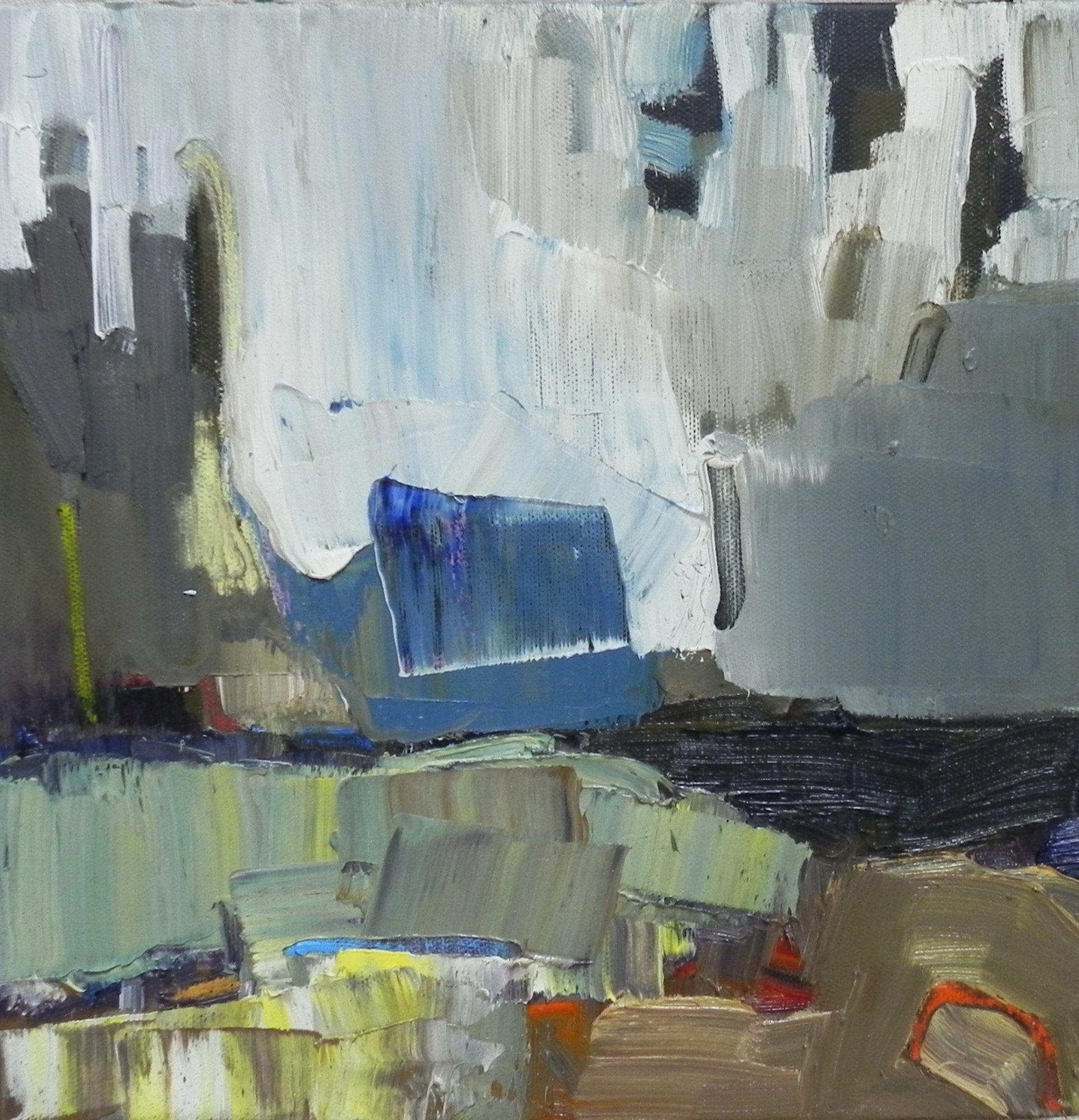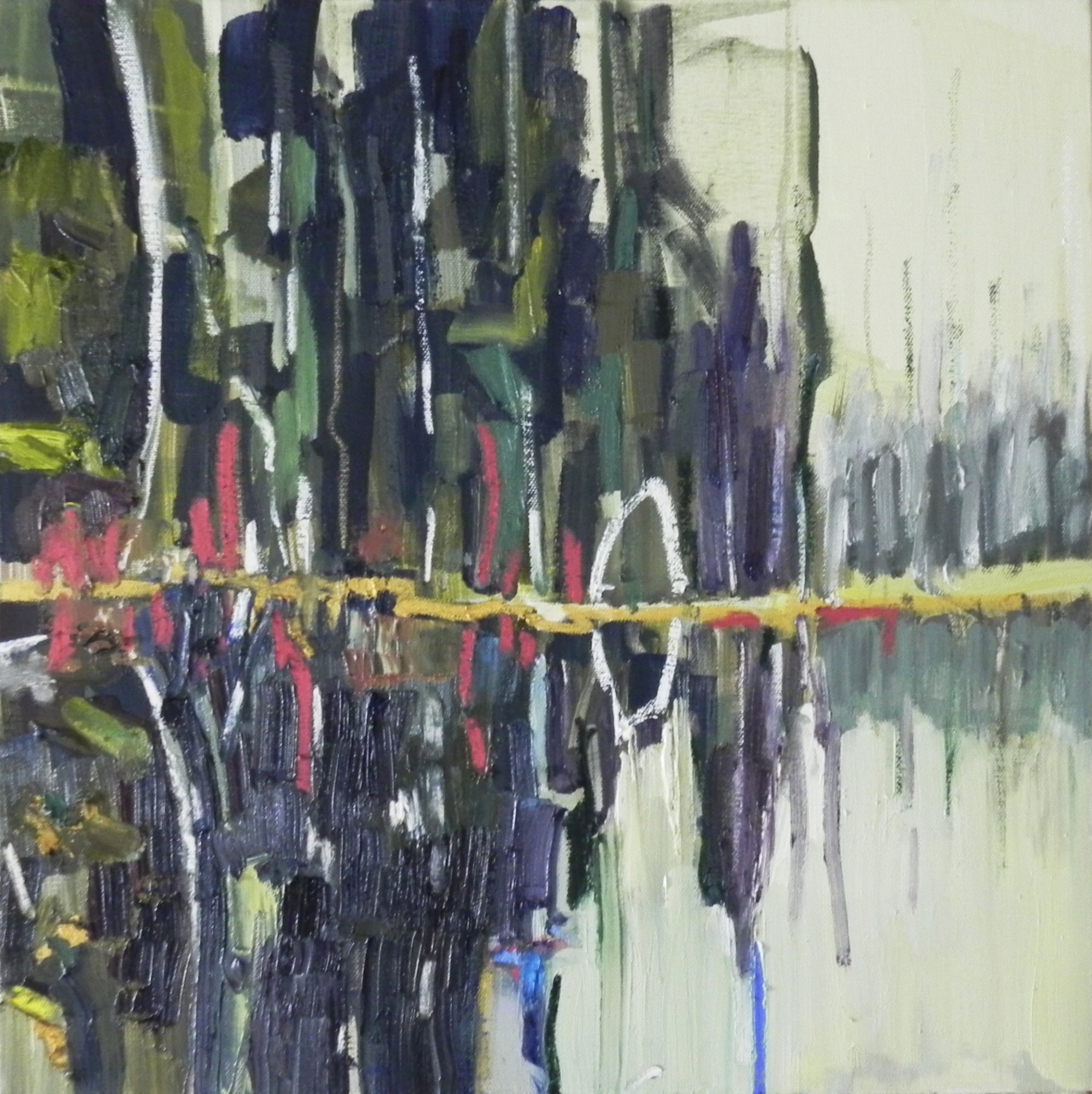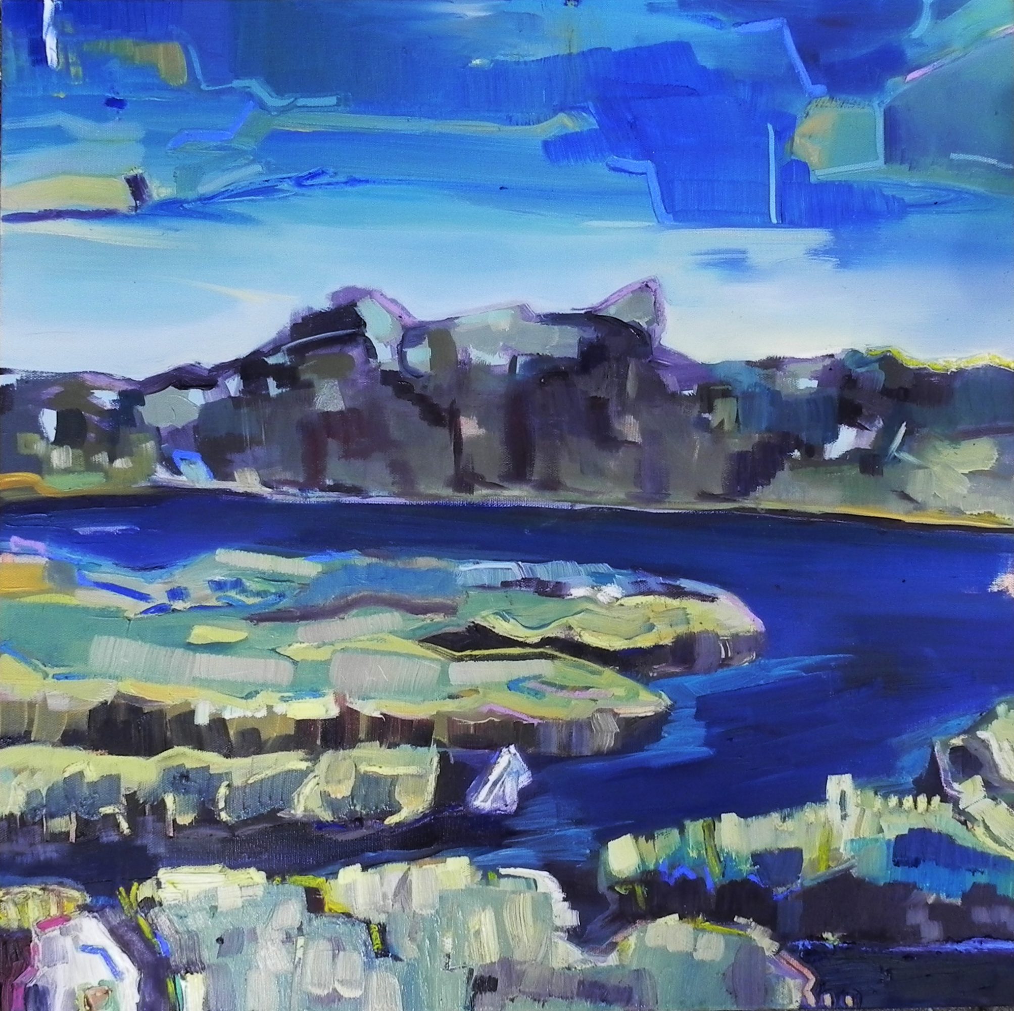 My work has moved between abstract and the non-objective while consistently carrying undertones of the landscape. In 2018 I have focussed on painting the essence of specific places. Currently, I’m investigating the bog near my home, Newbury Massachusetts marshes and New Hampshire’s White Mountains that I hike regularly. These spaces inspire the imagery and content in my paintings.