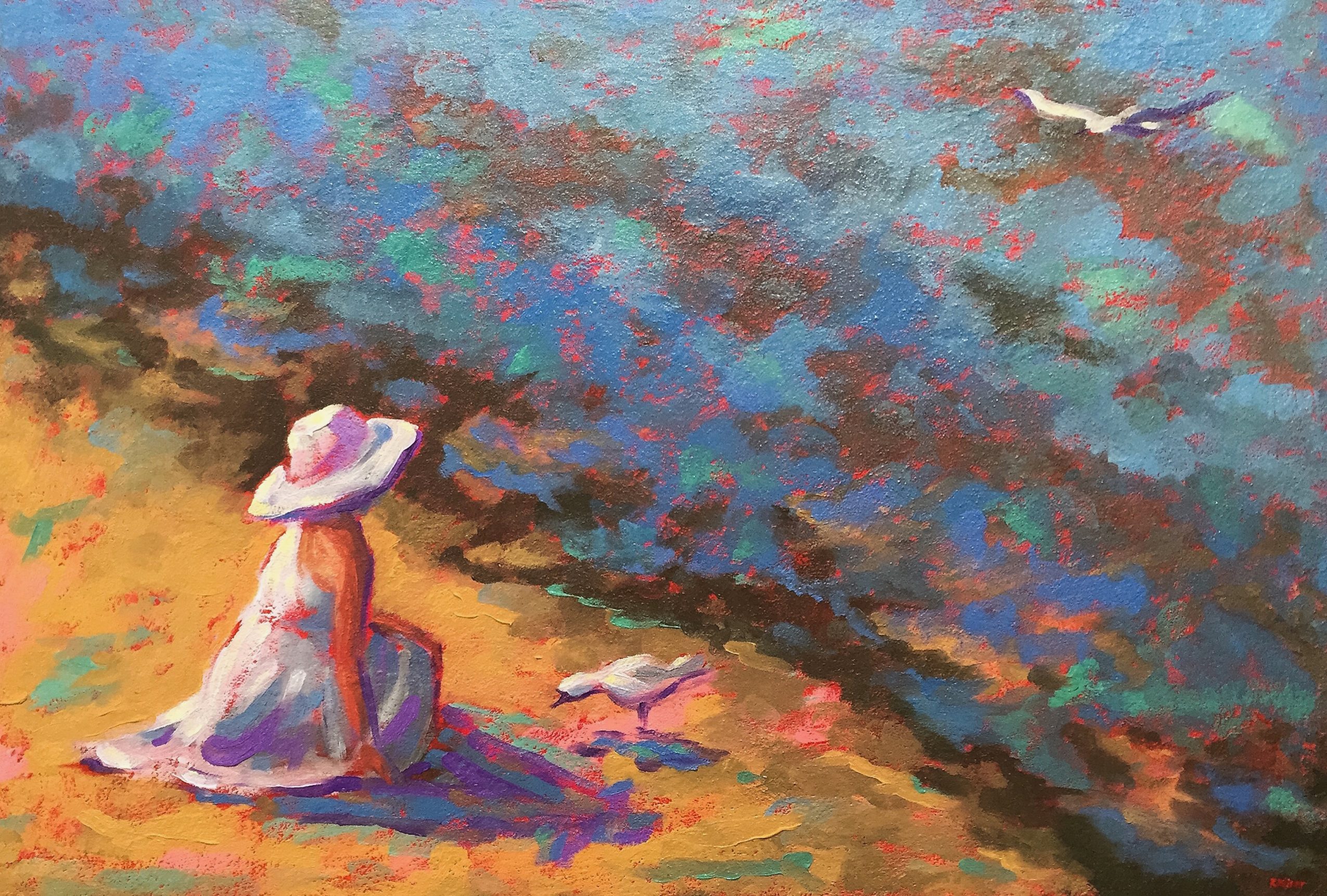 Things changed when I stopped working due to illness in my early 30’s. When I was unable to work, I committed as much time and energy as I was able to further my artistic passion and abilities. Drawing, painting, and simply creating became a healing component in my own life. After a couple of years, I was well enough to return to work, and at the same time, my passion for art began to turn into a career of its own. After showing in several galleries and various art shows, I decided it was time to dedicate myself full time to my passion. And in order to do that, I had to take the business side of things seriously. I decided to open a gallery in Rockport with my partner (also an artist) and take the plunge! That was over five years ago, and the business (and, more importantly, my art) has been taking off since then. I think it often takes a major life event to bring your true purpose to light.