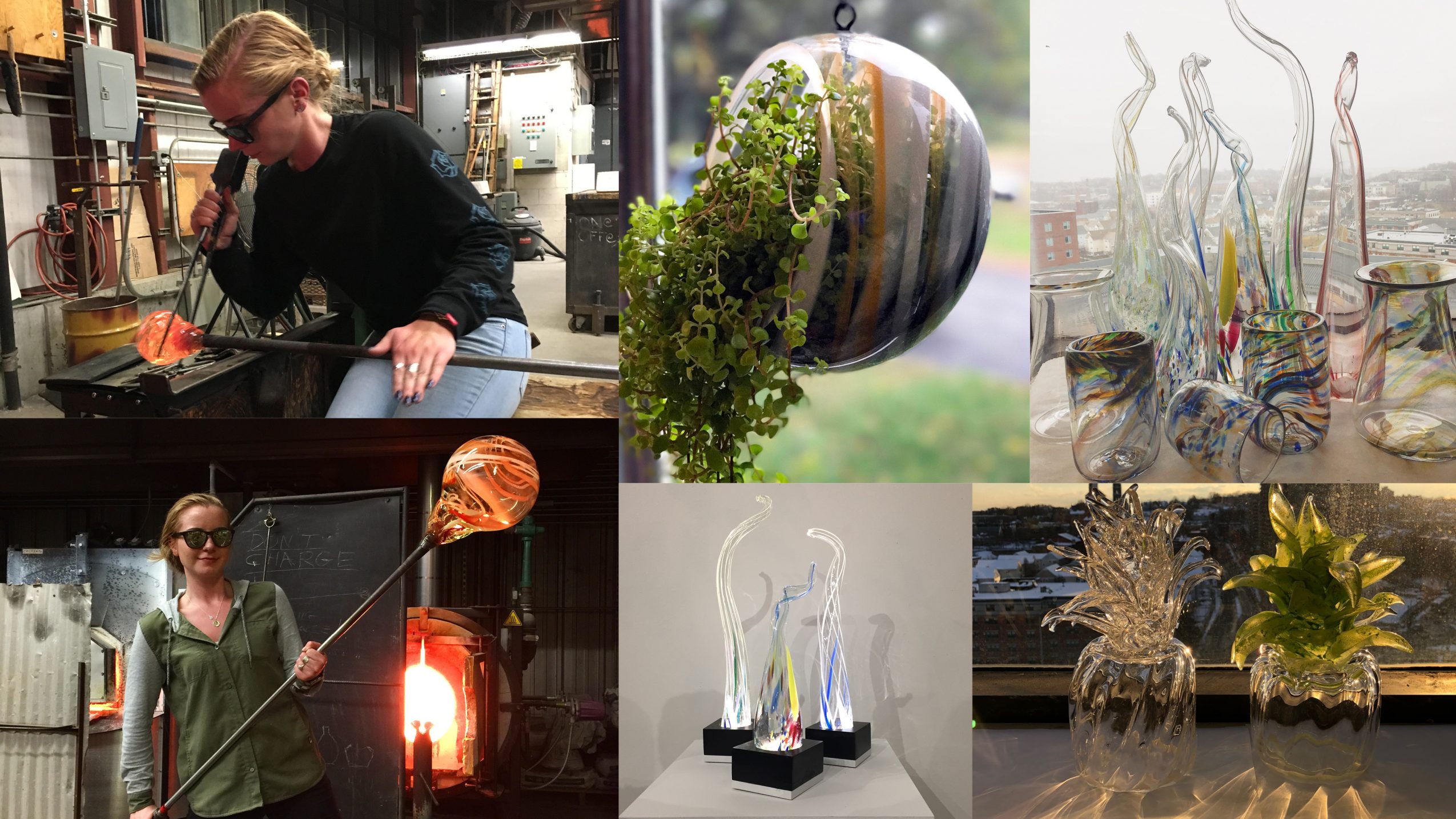 Katrina Carmichael Design is my side freelance business. It started as making posters for local bands, creating custom tattoos, drawing peoples cars, and anything art/design related people asked me to do. During my college career I wound up coming across glassblowing, which I completely fell in love with. I made custom glass pieces for clients and friends. I ended up making and selling many glass blown orb planters that can be hung indoors and out.