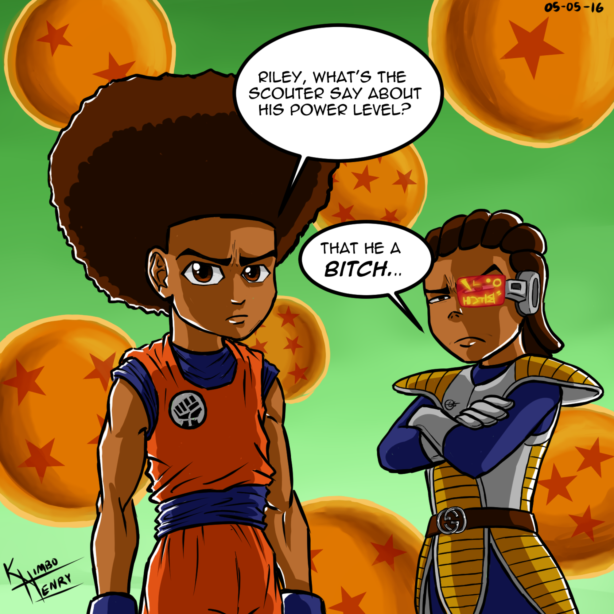 Of course, I’m most proud of my viral image. Usually I’m not a fan of just doing fan art all the time so at first, I figured people just liked it because of the mix of two very well-known shows, Boondocks & Dragon Ball Z. But it turned out that most people loved it for the dialogue. That made me feel much better when I found that out because it made me feel like people actually respected my talent (and wit) and not just the fact that it’s their favorite characters. I always appreciated that.