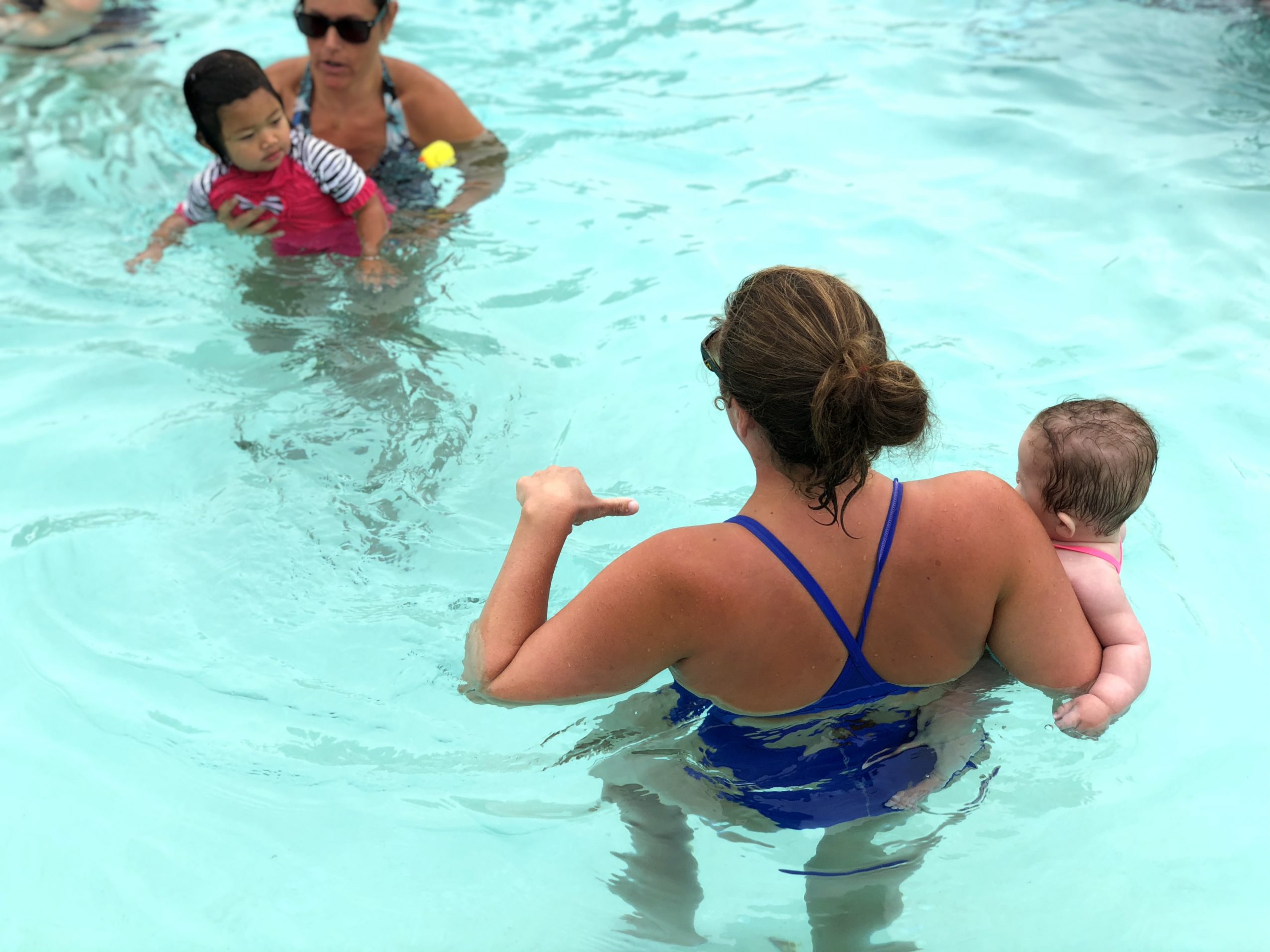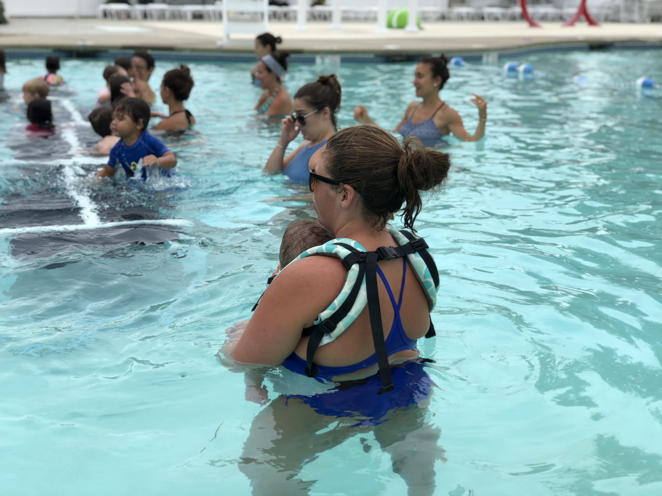 My oldest daughter is 2 years old, when she was born I decided that I could not travel for work anymore, so I started teaching at my home base pool in Braintree. Because of my daughter, I got really into infant swimming parent/child classes to be specific. Drowning is the leading cause of death in kids under the age of 4 and I knew just how easy it would be for my daughter to wander off into a body of water. I started the program with my oldest (Harper) and she taught parent/child swim lessons with me 7 days a week.
