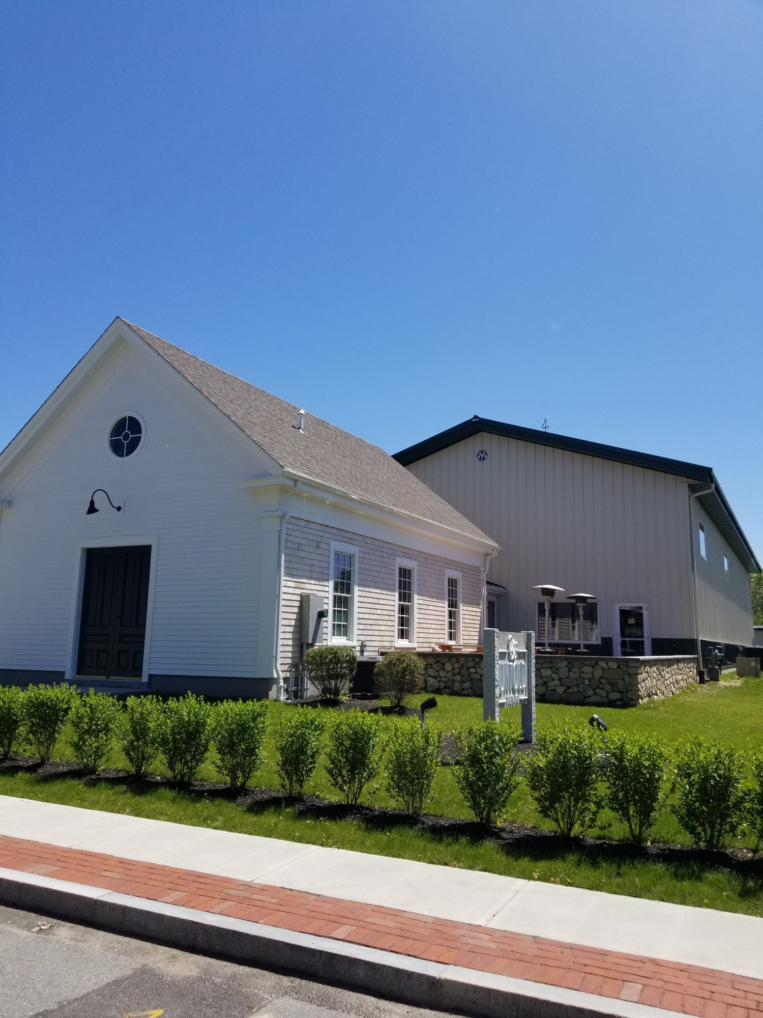 Scituate was always our #1 location for the brewery, as Matt and Kristin grew up there and we wanted to give back to the town where we were raised. We were fortunate to connect with the owner of a commercial lot in town and built a 5,000 square foot facility from the ground up (which our landlord owns and of which we are tenants). The brewery footprint includes a production space with a 15-barrel brewing system, bar, patio, and a taproom seating area that was formerly a 19th century Scituate schoolhouse (and which still has the original schoolhouse chalkboard on the wall!).