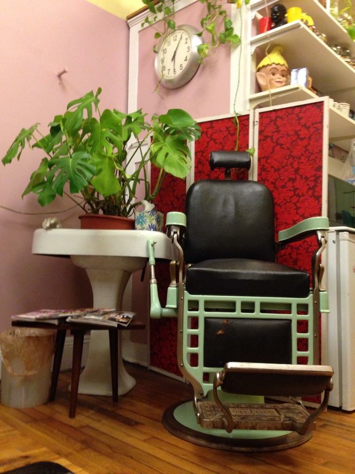 I opened my shop April Fool’s day in 1998… I had looked for an existing beauty parlor to run for years when a client asked me if I would take on a new customer as her shop was closing, sooo- I went over on my lunch break and bought the shop that was closing. It had been started by 2 women in 1936, resold to 2 other ladies in the 60’s and was now on the chopping block. I had walked by it many times, with its beautiful satellite lamps in the window- I used to gaze with admiration at this old gal. After a few phone calls, I had bought this shop. I slowly transformed it the goal was striving to bring it backwards to be a truly vintage shop (it was quite pink and brown and last renovated in the 80’s). I hired an employee from the old shop and she helped me with the “weekly ladies”. I merged the old with the new in a neighborhood I loved to become Miss Laura’s. We care for men, women and kids, 80 year old ladies weekly sets while also creating modern cuts and colors for the hep cats of JP. I’ve always relied on growing this business by good work- going word of mouth, by giving back to my local’s in need and by the odd draw of this style shop. We grew and grew. I never enjoyed working in a traditional salon, so I wanted to feel like the old beauty parlors, my shop feels like you’re in your weird great auntie’s house, my staff works together well and my reception is charming and helpful. 2018 is my 20th year in business and I am looking forward to great things in the future!