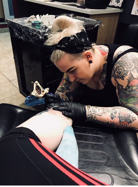 The tattoo industry is tough. It is still in a lot of ways a men’s industry, and I was the first female tattoo apprentice in my shop. You have to constantly prove yourself, not only to yourself but to your mentor and your team. There are hard lessons you have to learn and a lot of adversity. But all of it is meant to make you stronger and smarter. I faced a lot of tragedies during my apprenticeship, including the loss of my oldest brother and health issues pertaining to my leg. And there were times I thought about giving up, but my mentor and my peers helped me keep on. Without them, I wouldn’t be here.