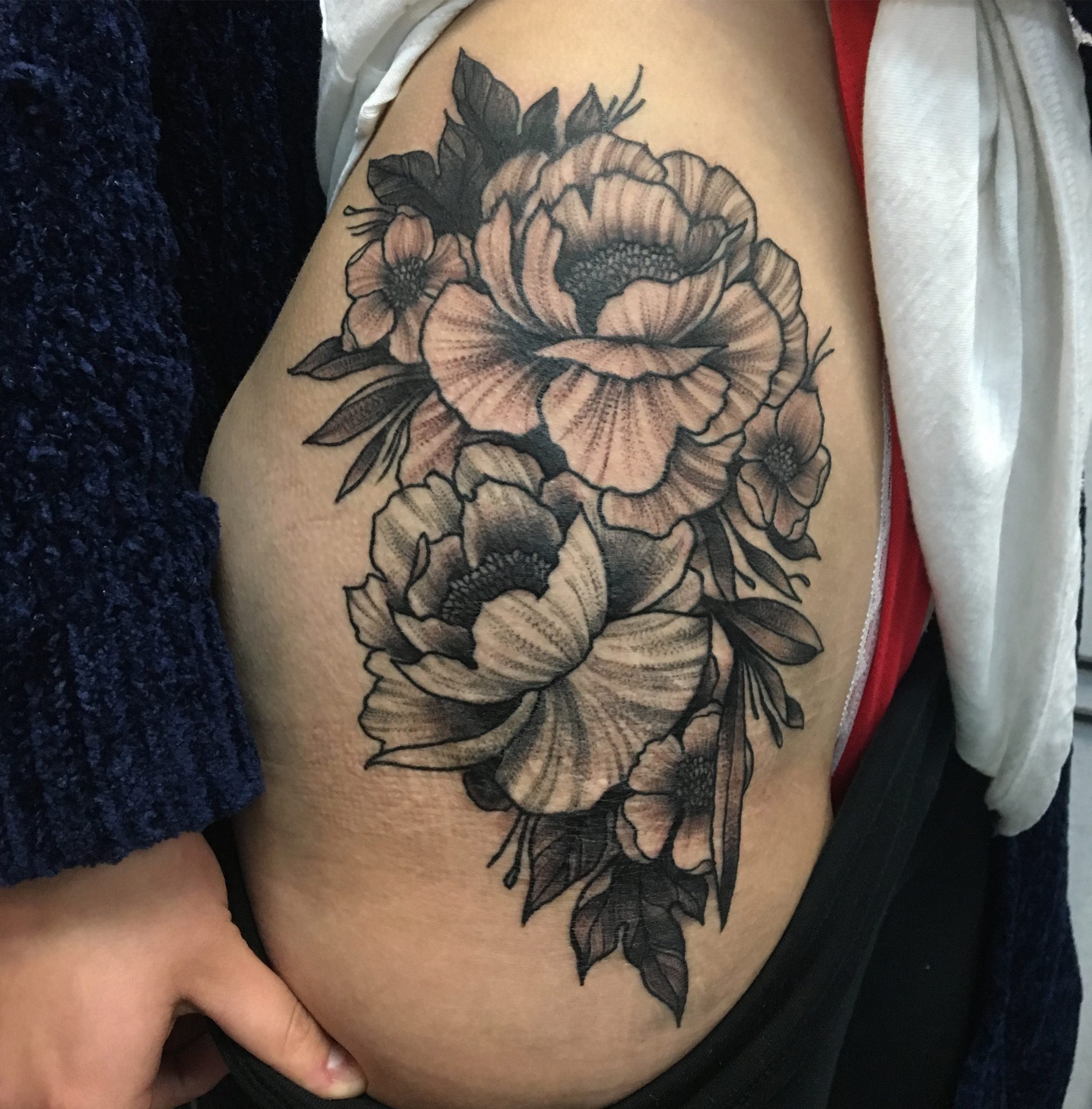 I have been a below knee amputee since I was a year old. I spent a lot of time in doctors’ offices drawing in my childhood, and I knew I wanted to be an artist, and always admired my brother’s talent for tattooing. With my parents support I did everything and anything I put my mind too, including ice hockey and gymnastics. I graduated from Massart and Paris Fashion Institute for college and thought fashion would be my career. After a few years, I felt incomplete, but more in love with tattoos than ever. I decided to leave the fashion industry at 27 and start over in the tattoo industry. My mentor and owner of our shop, Keith White, took me in and gave me a chance to make my childhood dreams come true and made me an apprentice. In a male dominated industry, I struggled to find my voice as both a woman and an amputee. Although I have a disability, tattooing has not only allowed me to be something beyond my disability, but it has also helped me embrace it. I have been tattooing two years now, and Everyday I learn more skills and learn important lessons that will stick