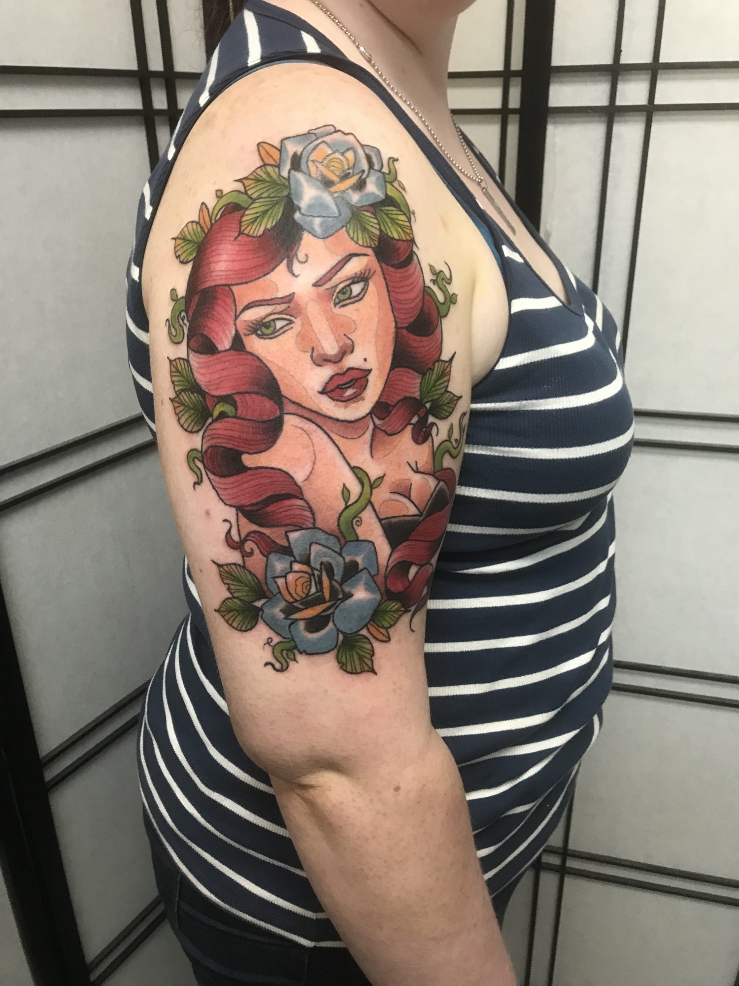 My parents treated me like an ordinary kid and allowed me the ability to reach for the stars, and I am forever in debt to them for that. My mentor Keith White is the reason I am a tattoo artist today, without him I wouldn’t have had any of these opportunities. Robert Kane is a colleague and friend who also helped me learn and become the person I am today as well. My wonderful Boyfriend Matt Connors is my biggest support system, and has never wavered in his belief in my abilities and my drive. My biggest cheerleaders are the rest of the squid’s team: Maggie Walsh, Joey PriXx and Tina Gray, They have always pushed me to be the best I can be. Most of all, I value my customers who have trusted me with their skin and my art.