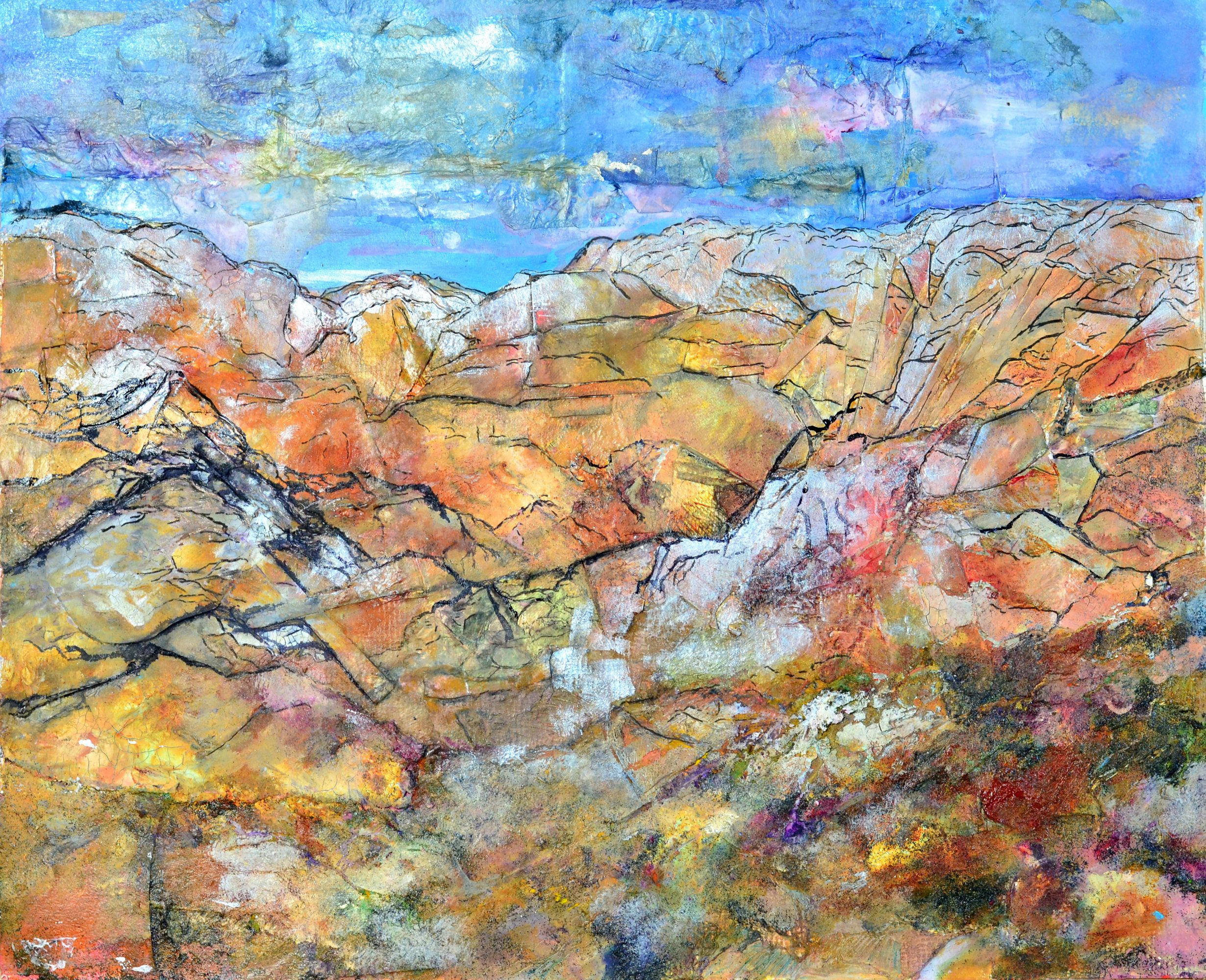 I left the desert but the desert never left me. I paint watercolors and construct mixed media collage of the Edomite Mountains, the Arava Valley. My paintbrush goes where I for- so I paint the hills and gardens of Vermont, the Catskill forests, and the Caribbean Seas. I have exhibited widely in Israel and the USA, and my artwork has been published throughout the world.