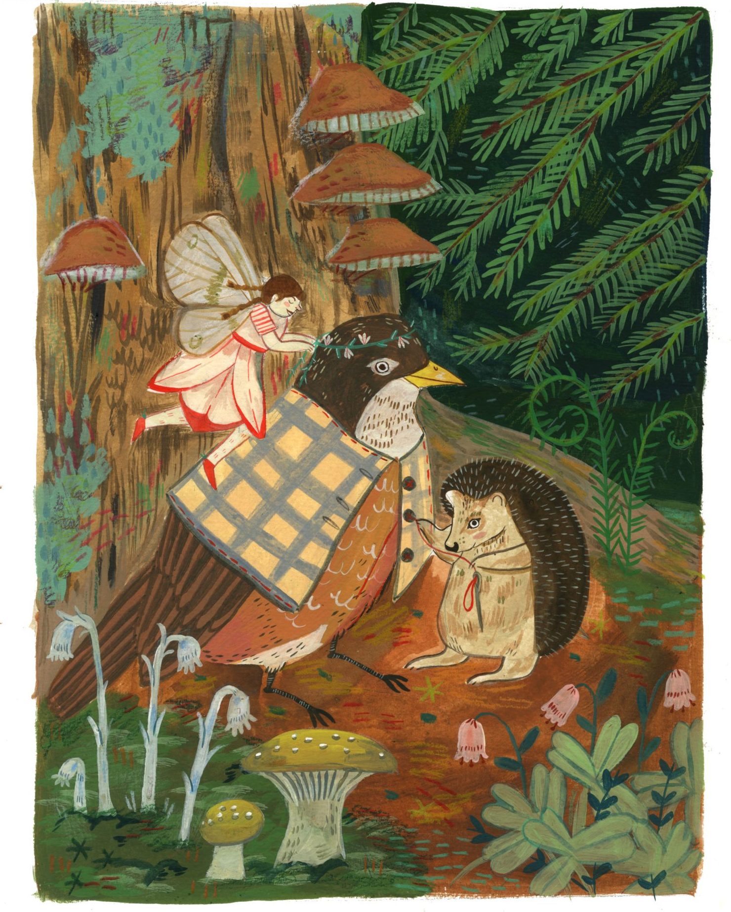 As a kid, I could always be found outside in our backyard, checking under rocks to see what small worlds could be discovered. My love of being in the outdoors only grew when I moved to a small town in New Hampshire. With tall pine trees and ferns growing everywhere, it seemed so hard to capture in a photograph. This was when I started to break out my old watercolor sets to keep record of what was around me. During my time at Montserrat College of Art, I fell in love with the narrative style of illustration. I found that this form of storytelling helped guide the sensation of what it feels like to be in the woods on a page. From here, I’ve continuously used illustration as a not only a teaching practice for myself, but also a way to tell hidden stories of what may really may be going on in a forest when humans are not looking.