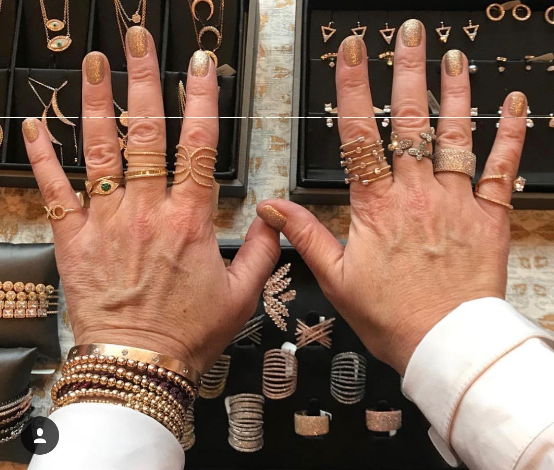 We scour the world (starting in our own immediate community) looking for authentic, unique pieces to charm, inspire and scintillate: the wafting scents of handmade candles burning; the abundance of beautifully placed gifts and trinkets; the creative wall hangings; the vast selection of clothing, shoes, belts, handbags, and scarves; and the wide array of beautiful jewelry. Everything in the store has been chosen by hand, personally by us, and in many cases, it has been customized for us: the leather for handbags and belts and sneakers has been chosen by my team and me, and is unique only to our store; I hand-pick the jewelry and in many cases, I customize those pieces as well. In fact, Rene Escobar has named a bracelet after me, Nancy Rabinowitz who designs Nathan&Moe has a necklace named after ne, and there is a “marina” earring within Miguel Ases’ collection