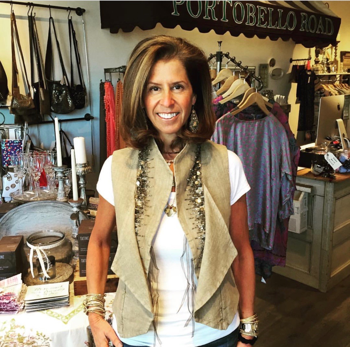 In 2005, my dear friend Kristina Lyons and I decided to start a small trunk show business with a curated collection of hip, easy to wear clothing and accessories. We had both been frustrated by the lack of any kind of store that offered an eclectic assortment of merchandise that appealed to our aesthetic. We held trunk shows at the homes of people who enthusiastically embraced our concept, and we donated a portion of our proceeds to the hostess’ favorite charity. Word got around, and many friends of friends would ask us to have more trunk shows. In the fall of 2007, we were approached by a friend whose company owns an outdoor shopping center, now called “The Street” in Chestnut Hill, which is about 20 minutes from Back Bay. There was a large store that was empty, and he asked us if we would like to try a pop-up store for the holiday season. We moved our rolling racks and some furniture into 5000 square feet, and Portobello Road was born.