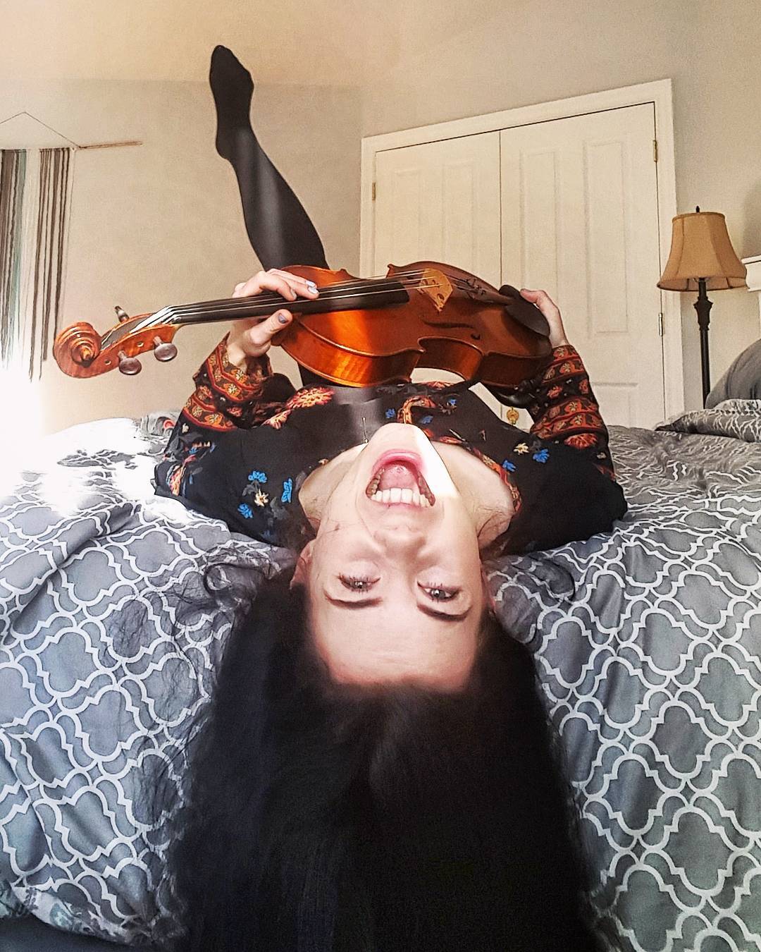 Most of my account is comprised of my videos and pictures with my viola and one of the specific things I like to focus on in my profile is candidness and humour. The world of classical music is very strict and it is no wonder that classical musicians are often stereotyped as very serious. I am serious when it comes to music-making but I strive to show that it is not who I really am outside of music. I like posting funny videos I take with friends, I complain about homework and being stuck on the train, I post selfies at parties and things like that. Maybe some of them are weird but it’s easier for me to just be my everyday self, than it is to maintain this “perfect” and serious image on social media.