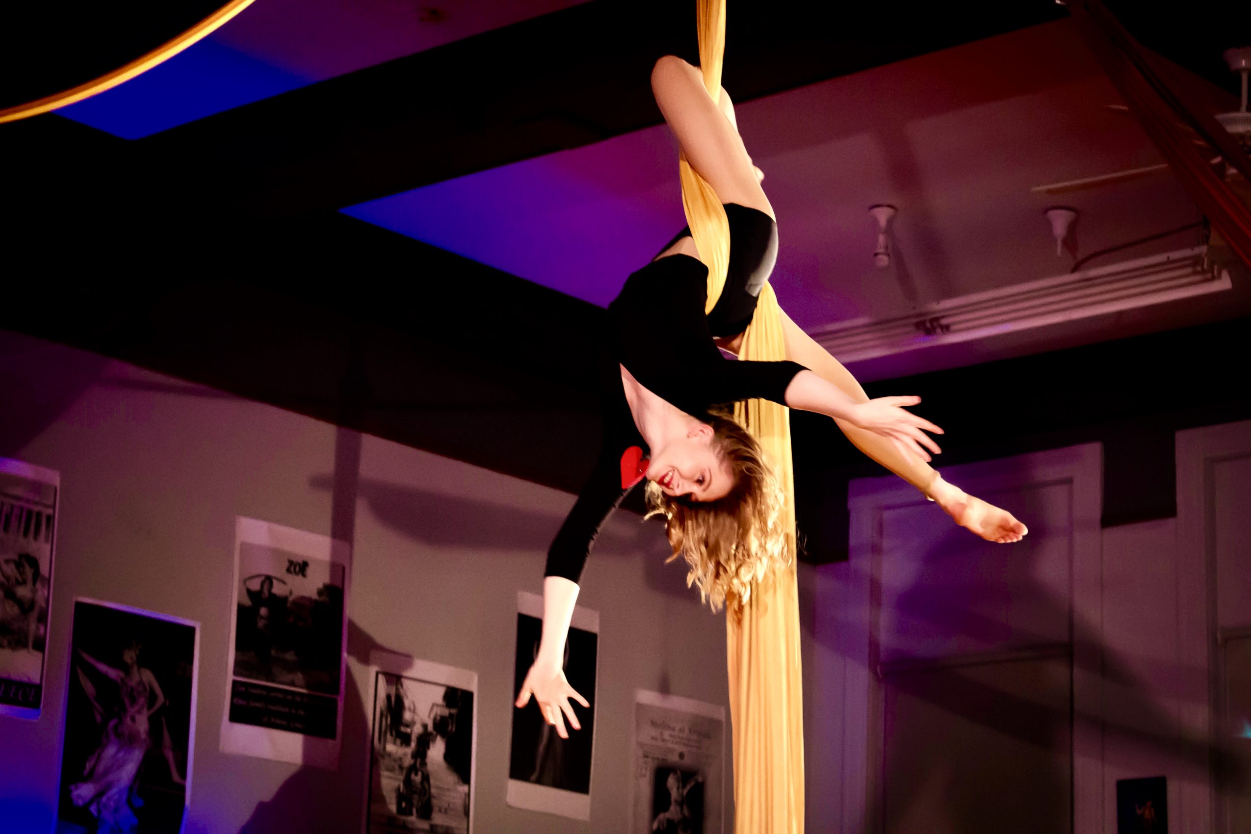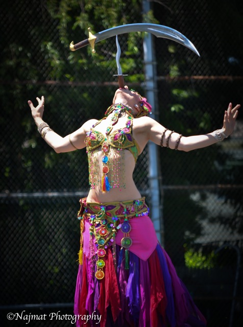 He performed with his circus family in countless shows all over the world doing a group unicycle act, trampoline, and comedy. He has performed on horseback, high wire, and everything in between. He was a star of the Big Apple Circus in the 1980s and was the first to put up their tent at Lincoln Center in the 1980s. My daughter Zoë has grown up in the circus and belly dance worlds and is now also an accomplished circus artist and teacher of aerial arts in the studio. I am an aerialist and dancer who specializes in balancing a sword on a dagger gripped in my mouth whilst dancing beneath the blades. We love what we do. We are down-to-earth people and welcoming to all who come into our studio. We want to empower every student to challenge herself, find pleasure in the process of learning and practicing, be conscious in and of their body, attune to details, and to set and achieve goals they never dreamed possible.