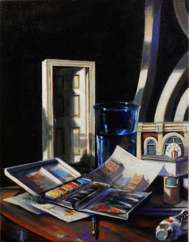 I am primarily a painter. I alternate between still life and urban /suburban landscapes. I love the effects of light: how it creates mood in the most ordinary of places or on simple objects. People often describe my still life paintings as quirky: I like unusual subjects such as yo-yos and paper towels. I hope that when someone views my work, such as a painting of a place they often pass without noticing, that they are surprised by the beauty.