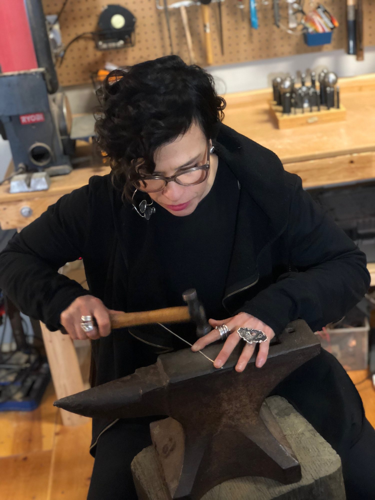 In 2015 space opened up. It was an opportunity to make this gallery/studio space come to life. After some negotiating and finagling I figured it out and leased the space. We had a very small budget to get this going! I am very fortunate to be in a long-term relationship with a carpenter. So the two of us together spent a month (all while doing shows too) cleaning painting, building and curating. And now we have this beautiful artisan gallery/my jewelry studio and represent 40+ artists from all over the country. All before 50… I just turned 47! I am still doing some shows for the time being but half of what I used to.
