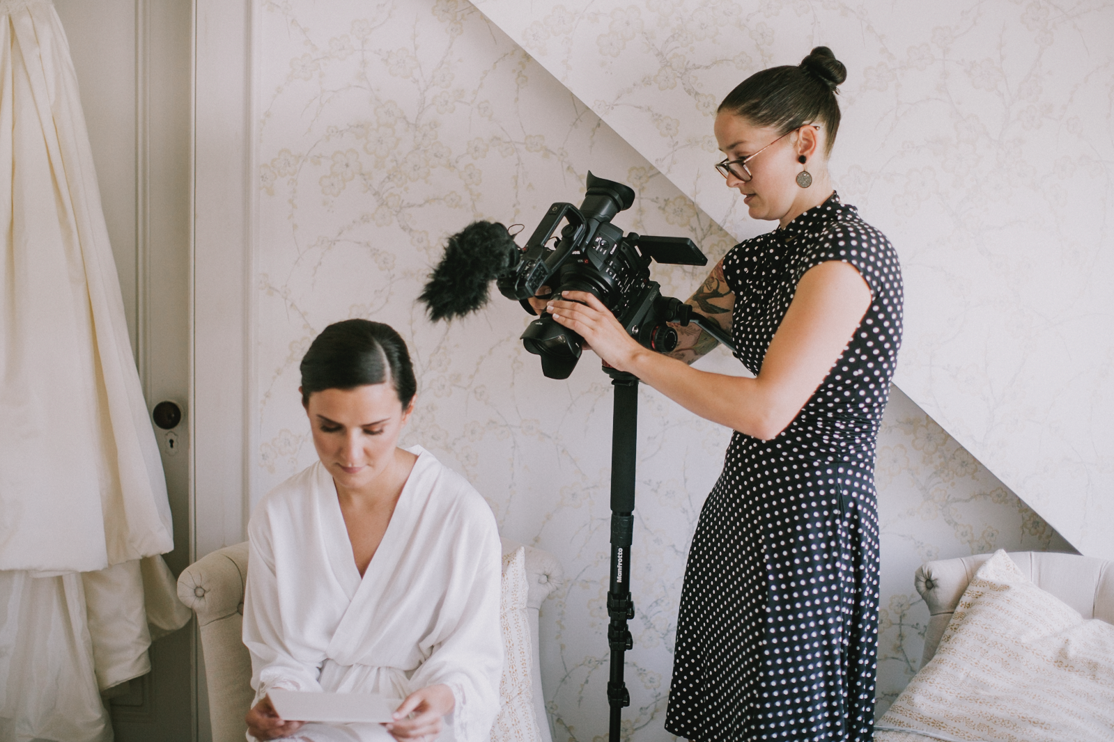 We are also in touch with your planner, band/DJ, and photographer leading up to the wedding day, that way we’re all working together as a cohesive team. It is very important to us that we’re not in the professional photos and that the photographers aren’t in our film. We communicate our strategy for certain parts of the day to make sure everybody gets exactly what they need.