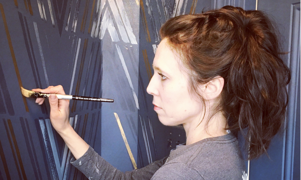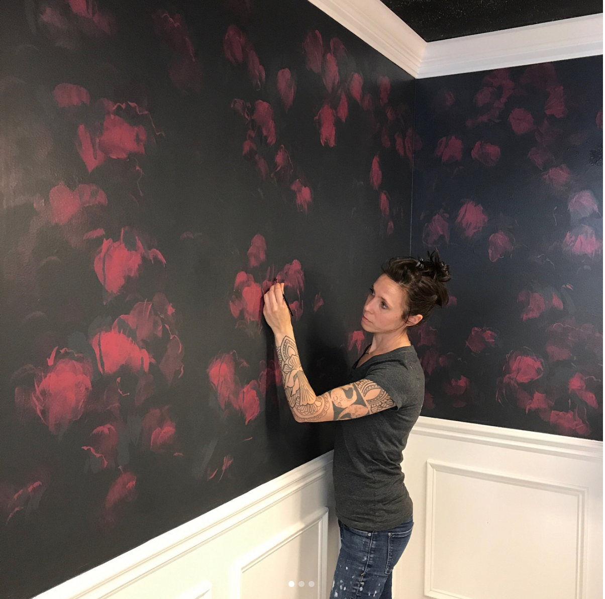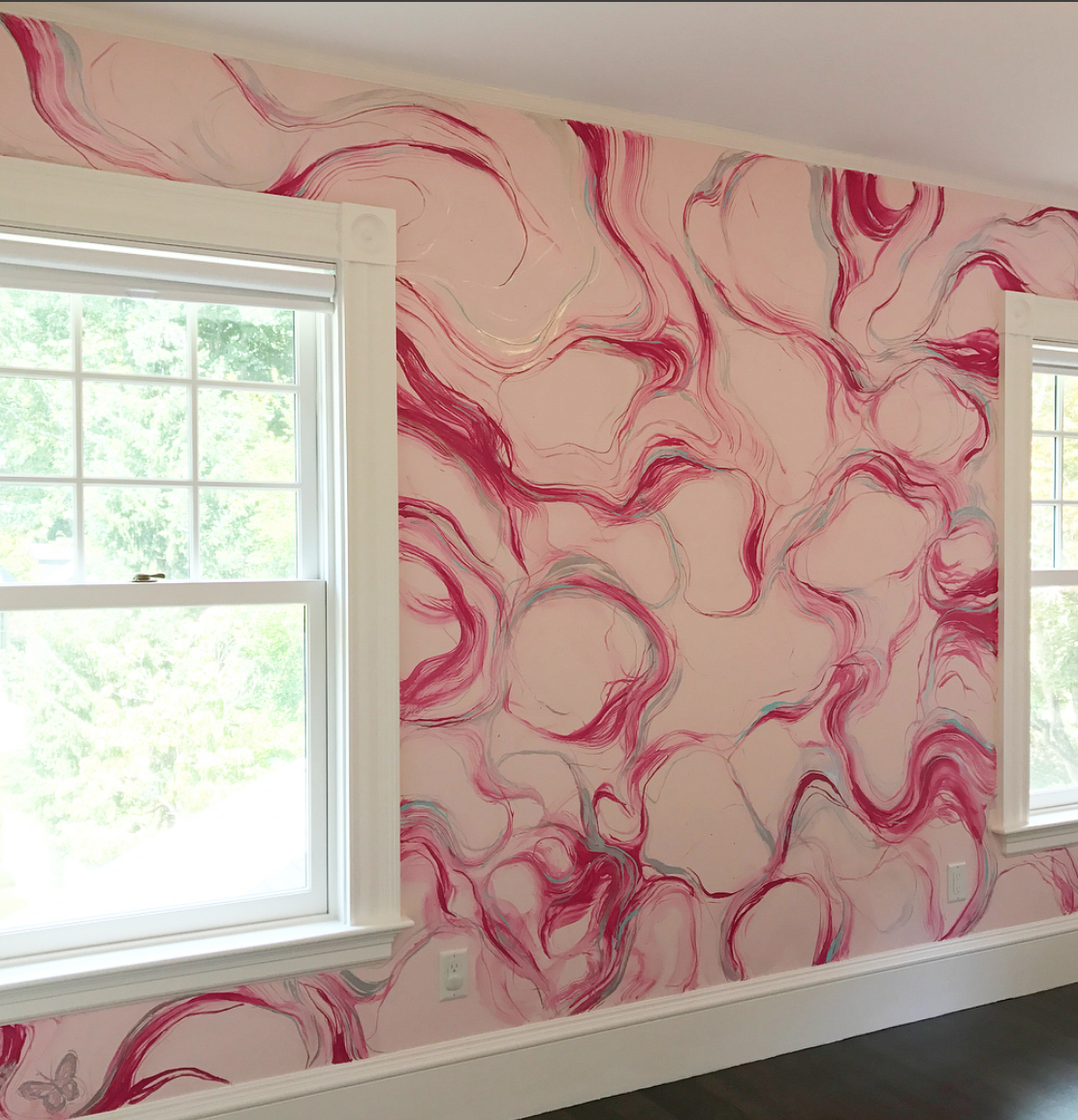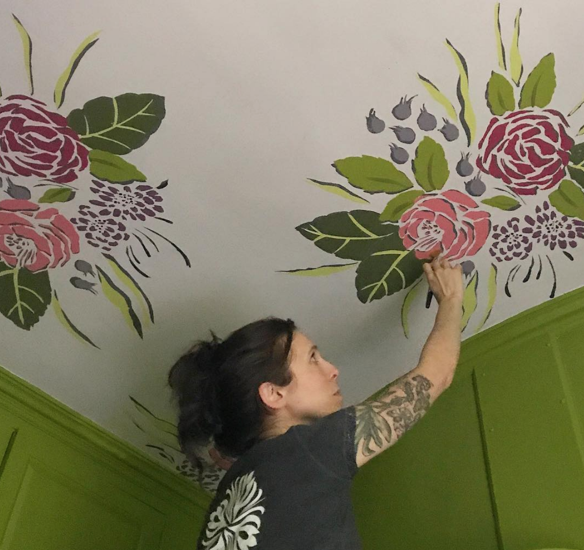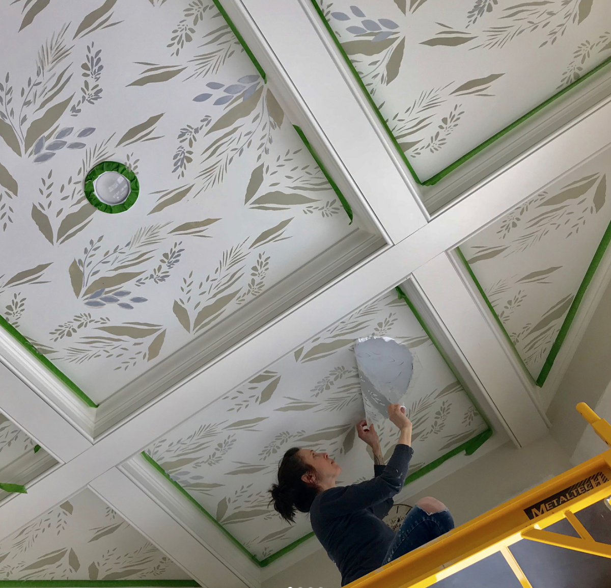 I don’t really know of any other businesses who hand draw custom patterns to hand print on interior surfaces. There are many faux finishing and mural companies, but I think what we provide is more along the lines of a custom wallpaper. I love getting to create unique new designs every day! I love classical influences but blowing them up to be huge for a modern spin on them. The handmade feel is so important to my aesthetic, making the patterns and surfaces seem alive and personal. We have done a ton of tricky jobs which are a few stories up! It has been a lot of two story statement foyers!