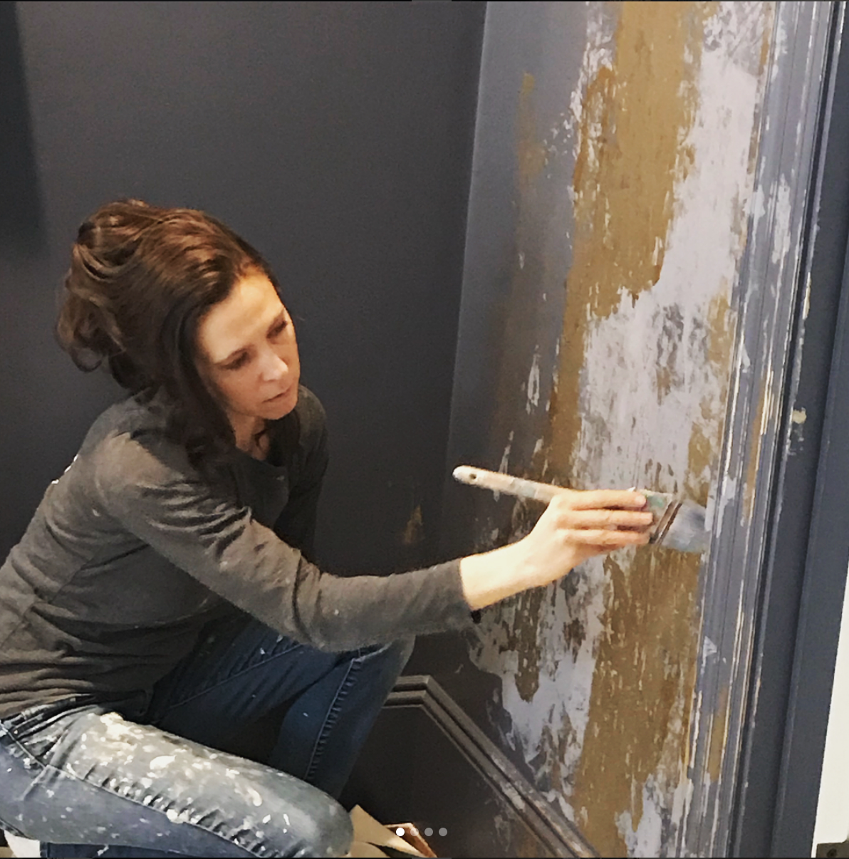 I began in fine art with a degree in painting and soon fell in love with pattern. I began my design business almost 20 years ago, drawing custom patterns and hand printing them on interior spaces. I soon started a painting company so I would have the help I needed for large projects! My favorites are where you would not expect it, ceilings and floors and huge scale designs with offset overlays. I like to print with glazes and brush strokes and free handing into the patterns and shifting the colors and shades to show movement and the work of the artists’ hand.