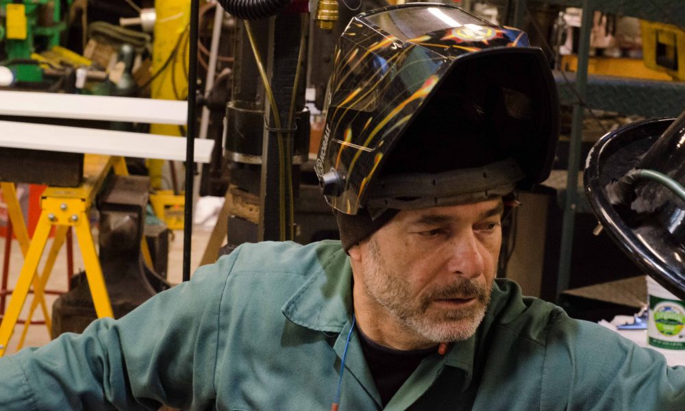 I started getting into metalwork as a hobby. I took a metal-art class, which was more of a jewelry-making class. The parts were frustratingly small. I was having difficulty working at that small scale. The instructor had a brochure for forging, and I said, “Forging? What’s that?” Turned out that it was blacksmithing. I signed up for the workshop and got hooked. At the time I had a graphics and illustration business. I was continually drawn to the shop. My real love was making work in 3D. As I picked up metalwork clients I became less reliant on illustration work and eventually transitioned entirely into architectural metalwork as my main source of income. An unintended consequence was that I had to replace what was my hobby as it had become work so I took up old-time banjo and now play in a band.