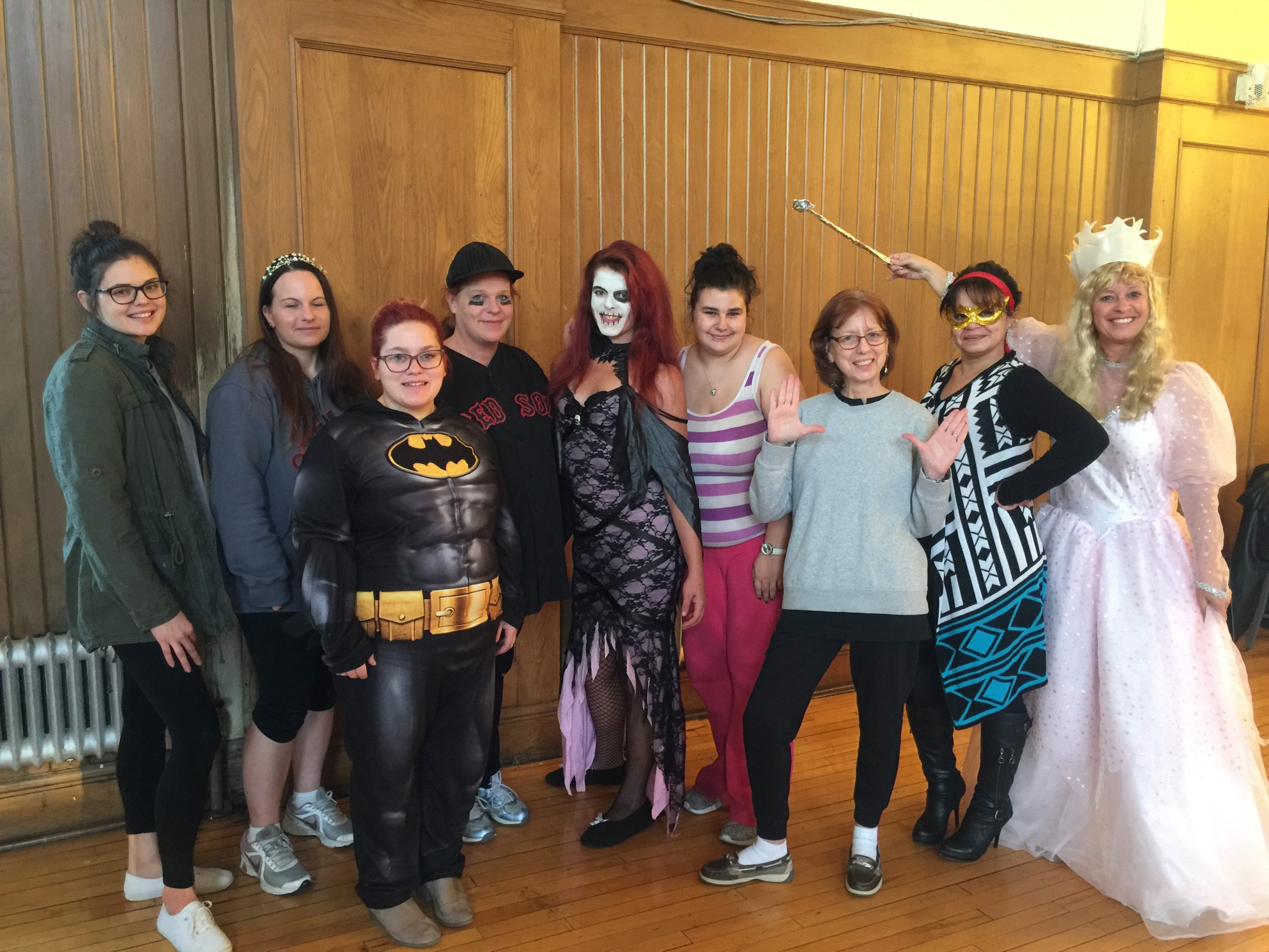 Karen Miller, Victim Advocate, Northwestern District Attorneys Office discussing domestic violence, receiving line at graduation. LtoR Senator Anne Gobi, Representative John Velis, Representative Thomas Petrolati, Representative Ellen Story, Honorable John Payne, Chief Probation Officer of Eastern Hampshire District Court Robert Ryan, Halloween class on job search, resume writing, and interviewing with instructor,