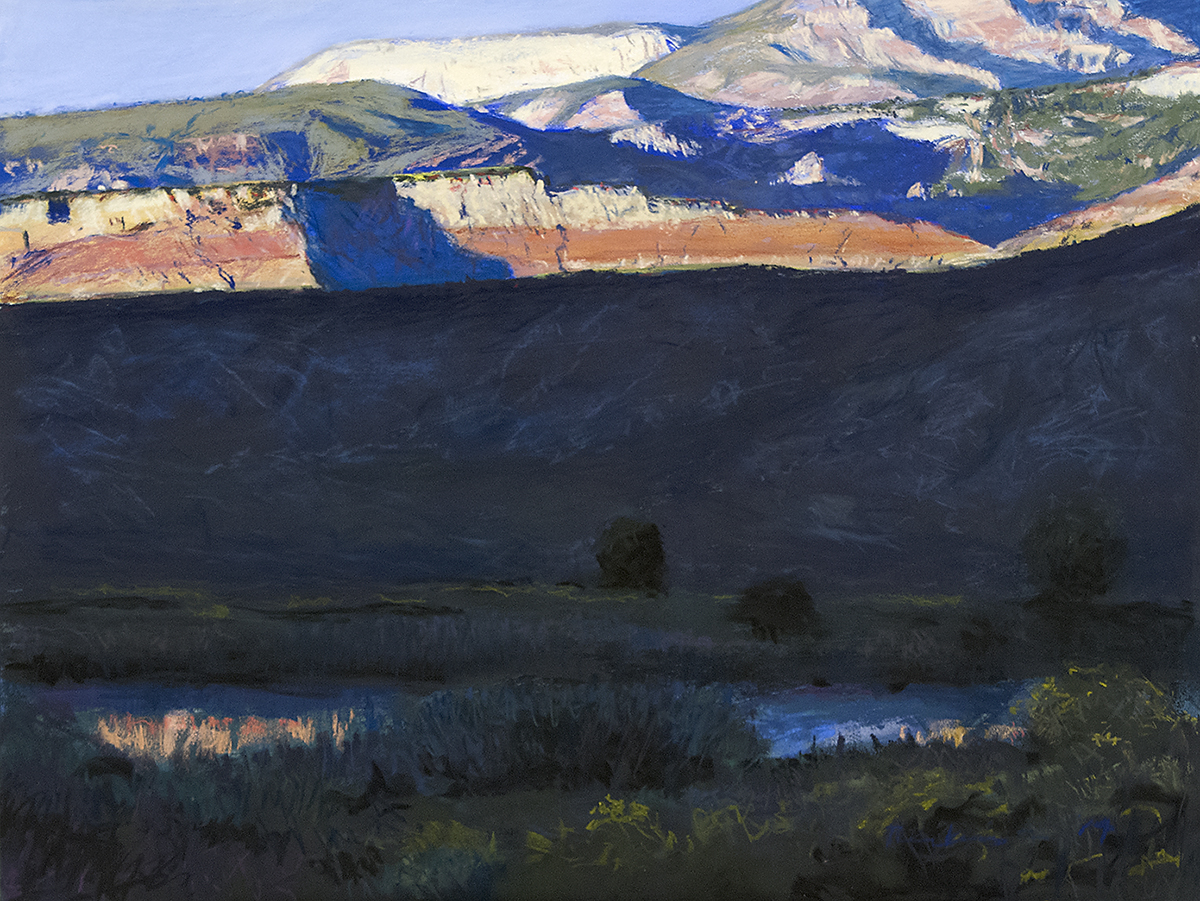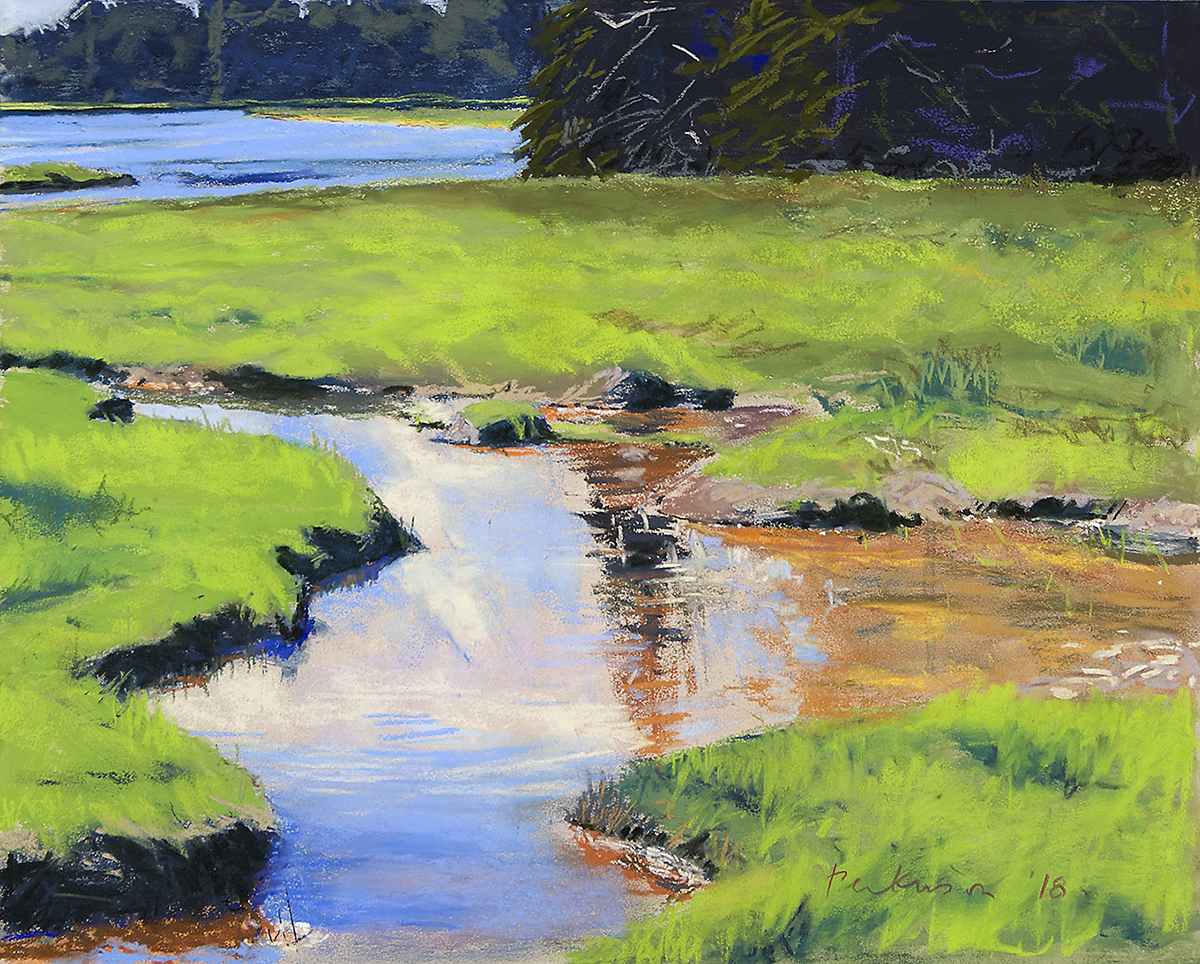 Some of my work is created on location, but occasionally I revisit certain ideas in the studio, where I may develop a new painting, often in a medium different from a prior version. I love working in oil, with its great range of textural and coloristic possibilities. I enjoy pastel because of its efficiency and directness when working on location, but I also relish the challenge of working in watercolor.