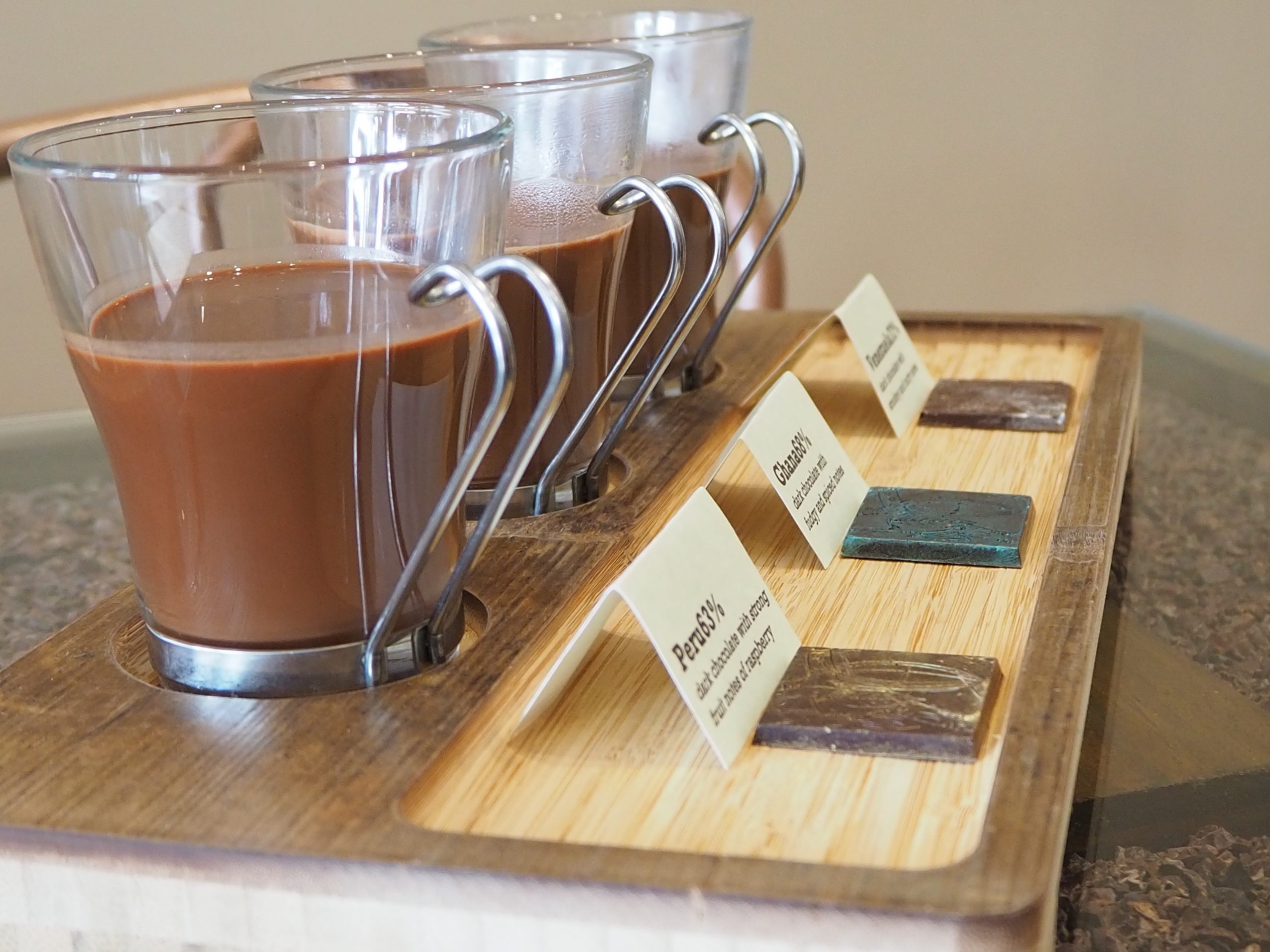 The chocolate cafe, where we serve drinks and chocolate-based pastries, has become a popular spot for meeting friends, book clubs, homework, and just enjoying a flight of drinking chocolate. The school (I have my M.Ed. and taught public school for a number of years) teaches chocolate-lovers ages 3 to 93 everything from tasting to truffle-making. We also work with local pastry chefs on recipe development and how to use and incorporate chocolate into their own repertoire. And, of course, the chocolate shop is where we can share our passion for making bonbons, truffles, chocolate bars, and more out of the highest quality ingredients.