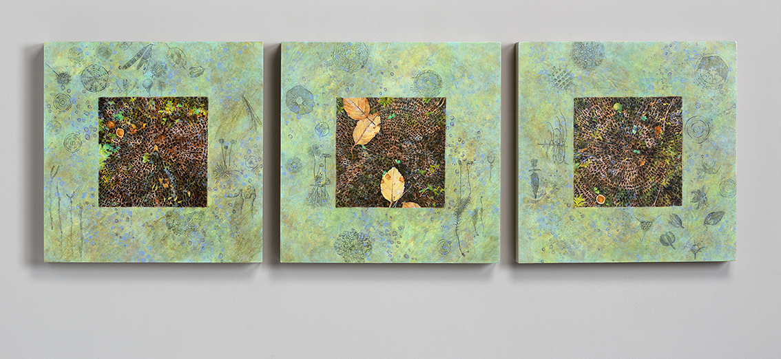 Integral to my work is the use of layering and collage. Images are embellished with stitching and personal “text” markings. These elements reflect encounters with the natural world where with collected views and flashes of details pass through our senses and form our experiences.
