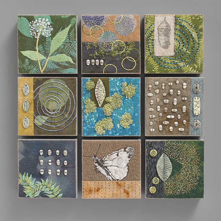 Now I make textile constructions, paintings artist books, and small sculptures. These media are connected in my work as I often take an idea for a series and work on it in several disciplines at once, using some of the same drawings, found objects, and embellishments on different pieces. With languages of stitches, marks and patterns on hand printed textiles and papers, I connect to eras when people lived by the cadences of the earth, times when both subjects and symbolism had spiritual bonds with nature.