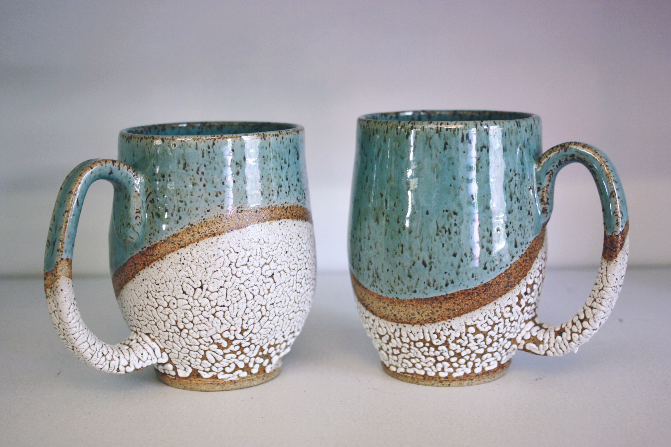 Mud&Yarn is literally just that… I take clay (mud) and create functional pottery, jewelry and dishware and also crochet (yarn) cozy accessories and apparel. I like to keep my styles simplistic and minimal for the most part, but sometimes you’ll catch a mug with a sassy phrase or see me crochet a scarf with a crazy colorful yarn. My biggest seller and most popular item are my mugs. They are my favorite thing to make, by far! I’m an avid tea drinker and since I collect mugs from other artists and sip my tea from them every morning, creating my own mugs to pass on to people puts a big smile on my face. From throwing the form on the wheel, trimming the foot and then adding a handle, a mug has so many elements of the skill that it really shows the personality of the potter by the time it’s completed. The fact that no two mugs are exactly the same is even more intriguing to me. I like to let a lot of my personality show in my work, and I definitely share a lot of the not-so-glamorous process shots on my social media accounts. A big thing that attracts me to artists is their candidness and honesty, so I like to do the same so that people can really get a sense of who they are buying from and it gives the piece so much more personality and meaning.