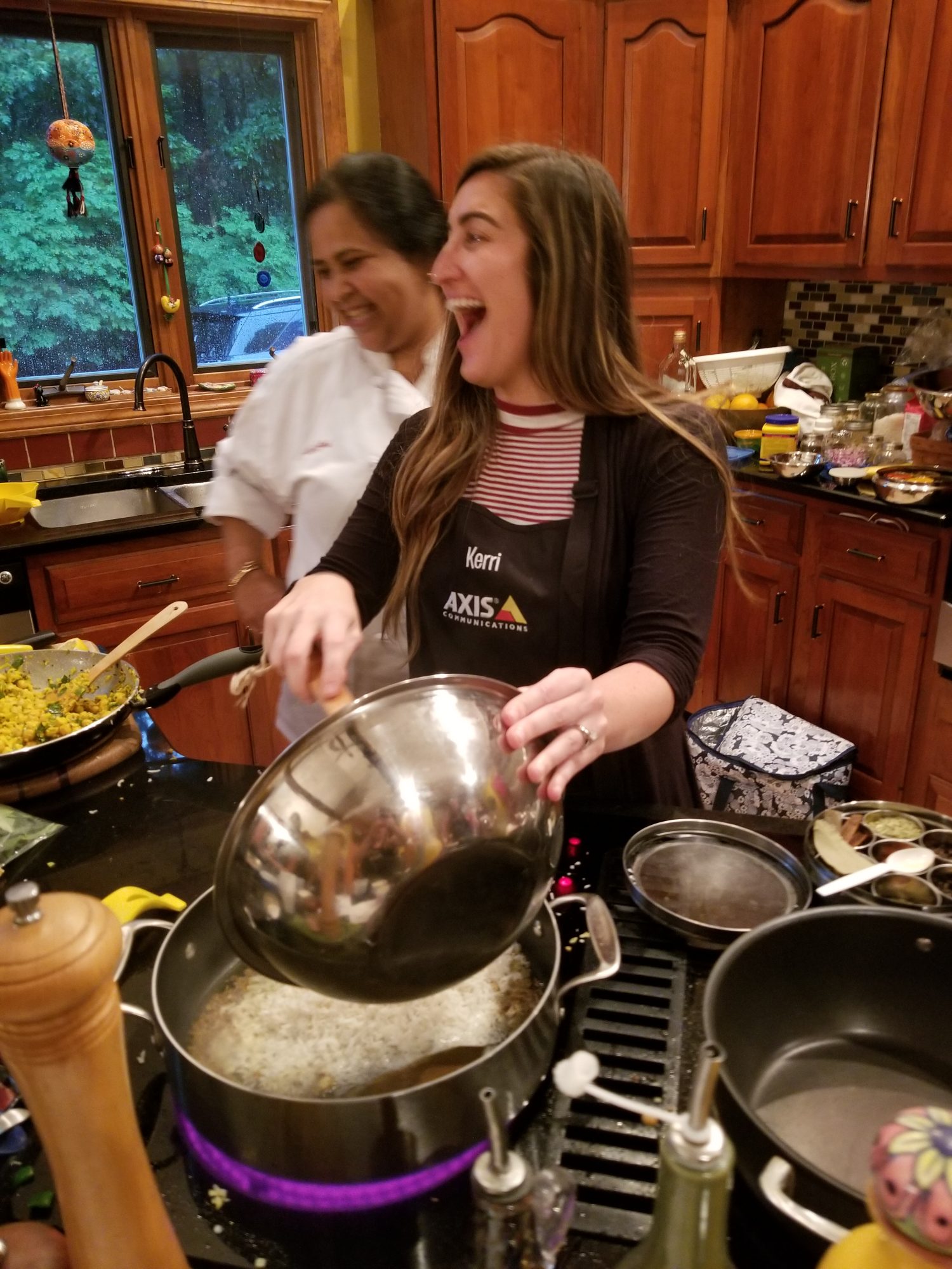 I get compliments from my patrons often about my, “warm, hospitable personality and sense of humor, Shilpi brings lots of excitement and energy to the cooking experience.