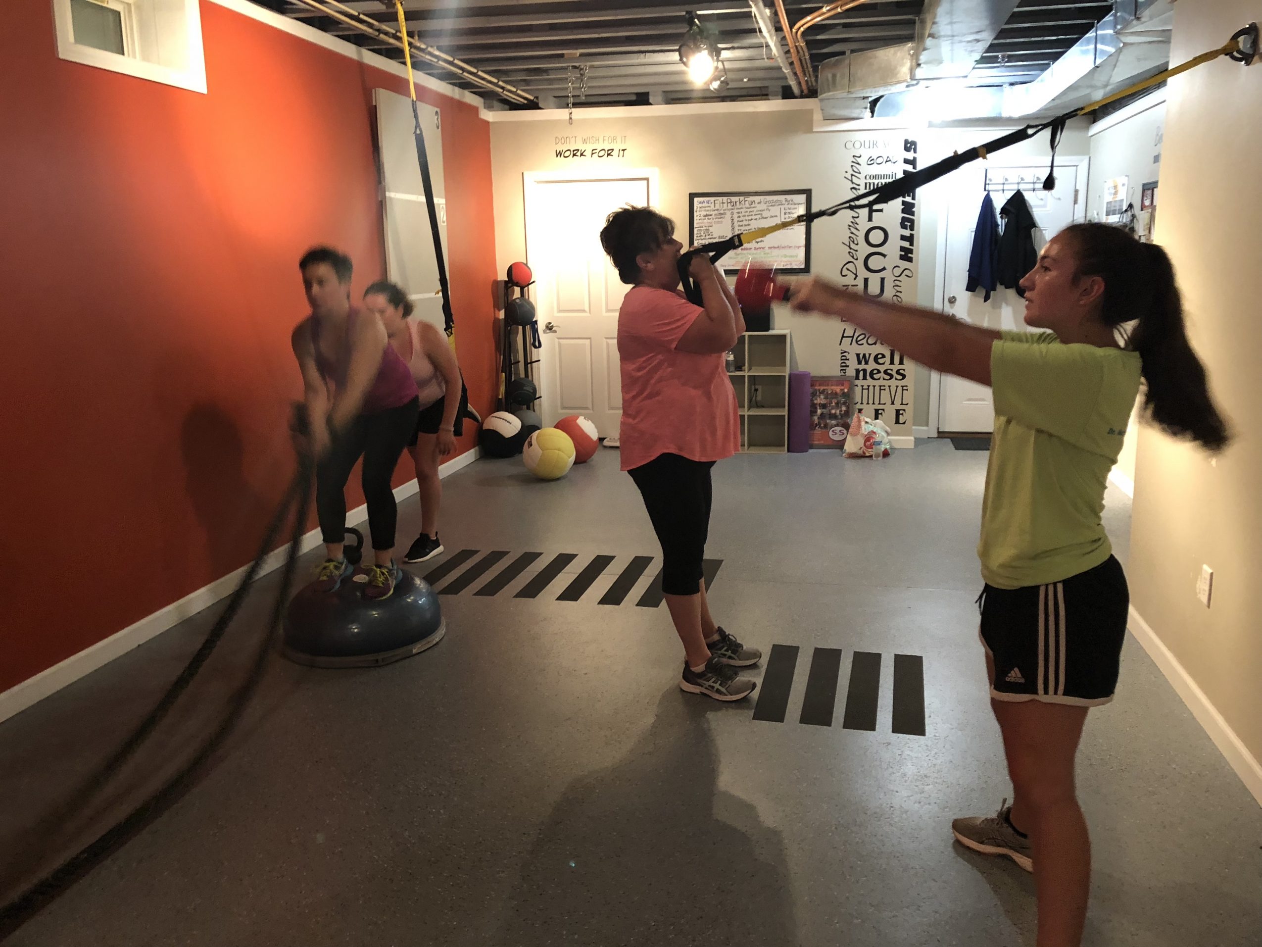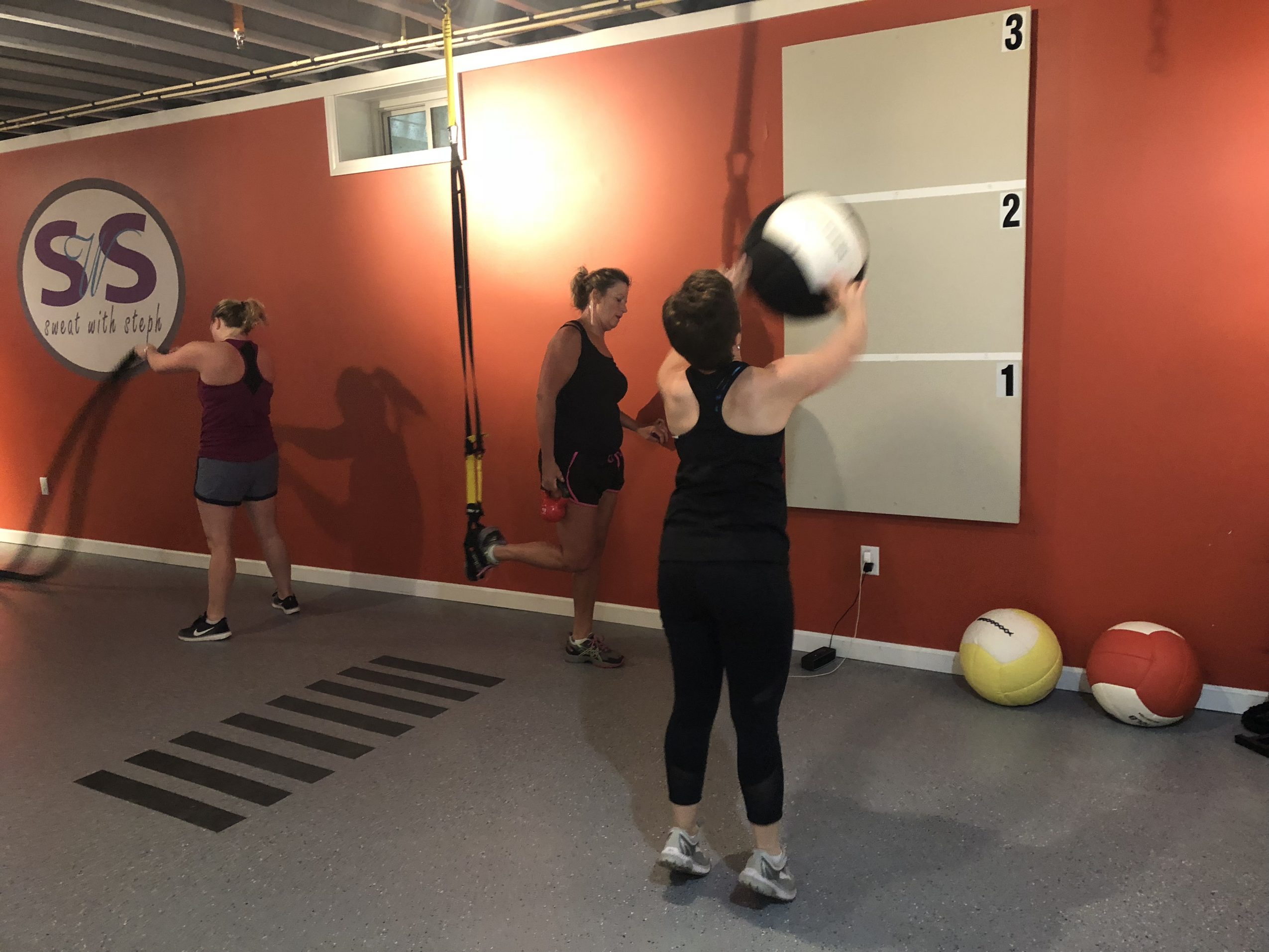 After a few years, it was time to back at it. We built a house in town and with it the thought of a basement studio, where I would be able to do personal and group training sessions. After a lot of hard work and planning, I launched my business which I call Sweat with Steph. I started by doing a couple of classes and had an increasing interest in what I was doing. I concentrate on full body circuits using a wide variety of equipment. Arms, legs, cardio, and core all in one great workout. These are small groups which are not only fun but it also provides a great connection and encouragement between participants…
