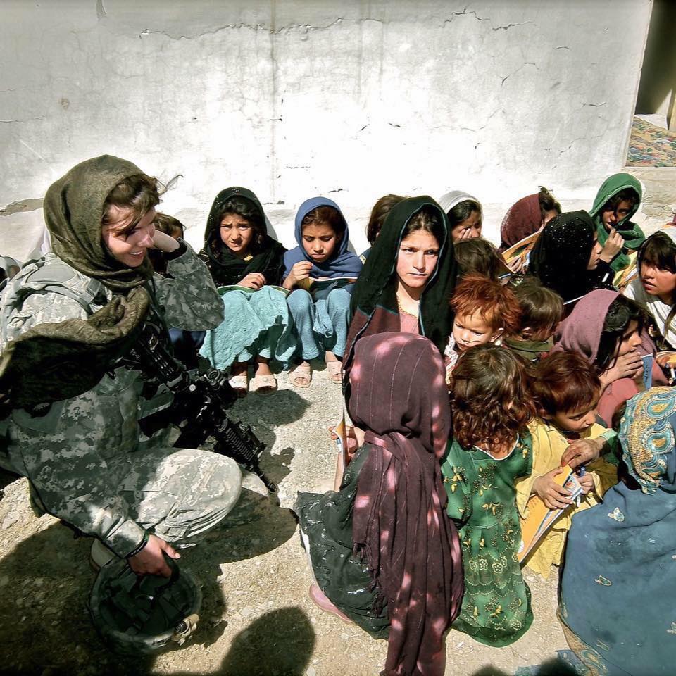 I truly believe that the key to success lay in the foundation of education for children no matter where they live. Learning of the alarming 2% literacy rate in the province, I knew I had to do something to help change that and to keep my promise to Bibi. I was the lowest ranking soldier and only female in my detachment. These two obstacles should have completely stood in the way of my success, but because I had no idea they even were obstacles, I charged in head-on. I developed my program, presented it to the Brigade and began an education initiative, carrying school books and backpacks into the villages to give these children of war a real chance at life.