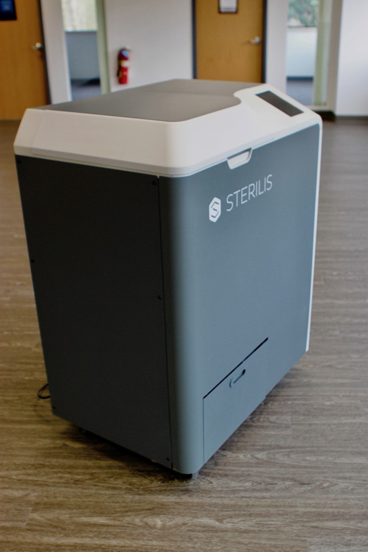 The Sterilis device is the first of its kind. It is an internet-of-things-enabled, proven alternative to the decades-old method of hauling and incinerating infectious medical waste. The patented system steam sterilizes waste at 280 degrees Fahrenheit, after which it is ground up into a confetti-like material that can be thrown away in the regular trash. The entire process takes about 60 minutes. The device also tracks and stores all performance and regulatory data in the cloud, where it can be accessed and monitored at any time, eliminating the unnecessary paper documents currently needed with the current “haul and burn” approach.