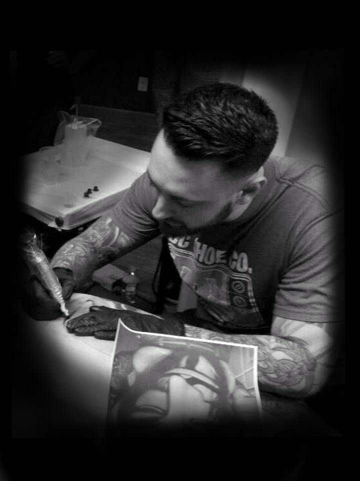 I was born in Lawrence, Massachusetts. Since childhood, I’ve always enjoyed art and music. I’ve never had any formal training or been to any type of art school, but I started drawing at a young age, and continued to do so throughout my life. After getting tattoos and becoming friends with some tattoo artists for a few years, I began to take interest in the idea of doing tattoos myself. I did my first tattoo in 2005. I tattooed myself and practiced on friends randomly for a few years before I decided to get serious and become professional. I was fortunate enough to get an apprenticeship under Steve Barrett and Lion’s Den in Salem NH in 2009. That’s is where I started my career, and I’ve been tattooing ever since. And proud to say that last year I opened up “Art of Creation” with my friend and fellow artist Aaron Sheehy. Looking back, it’s a pretty cool feeling to have been able to turn something I’ve been passionate about my entire life, into my career.