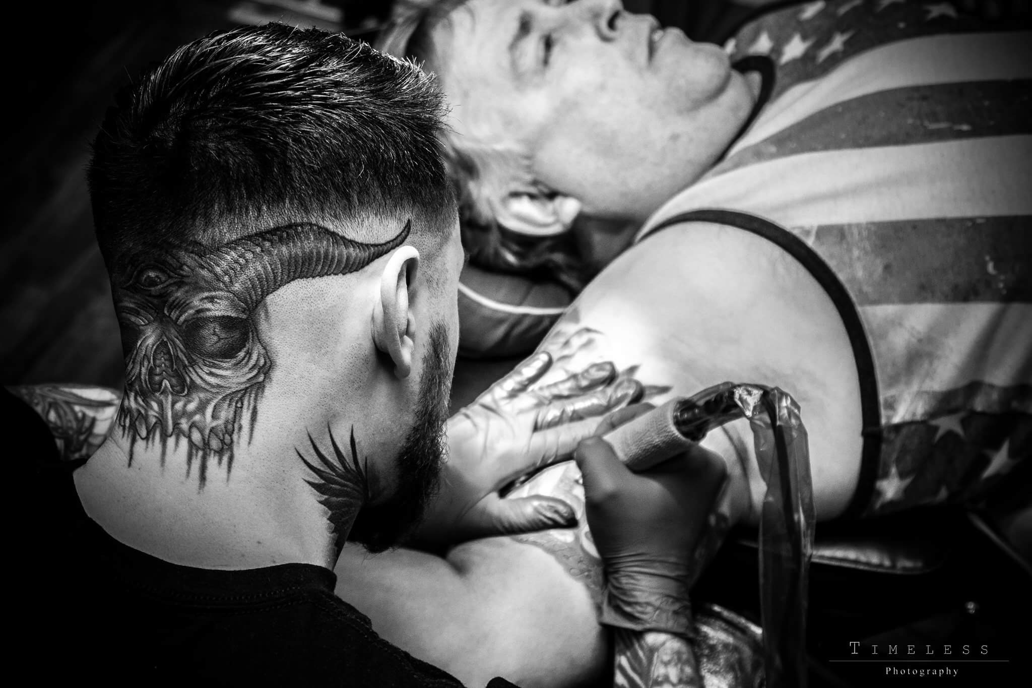 I enjoy drawing and tattooing in all sorts of styles. color or black and gray. realism or abstract. As long as I have the opportunity to get creative. It could be skulls and horror, or cartoon characters, or animals. I will always find a way to add my own style and have fun with the tattoo. That’s what keeps me inspired. I feel fortunate to have a job that allows me to do something I enjoy. I get to create art every day and I’m grateful for that. Not all tattoos have special meaning or sentimental stories behind them, but every tattoo is a part of someone forever. It’s a great feeling to take someone’s ideas and turn it into a piece of art that they will enjoy forever.