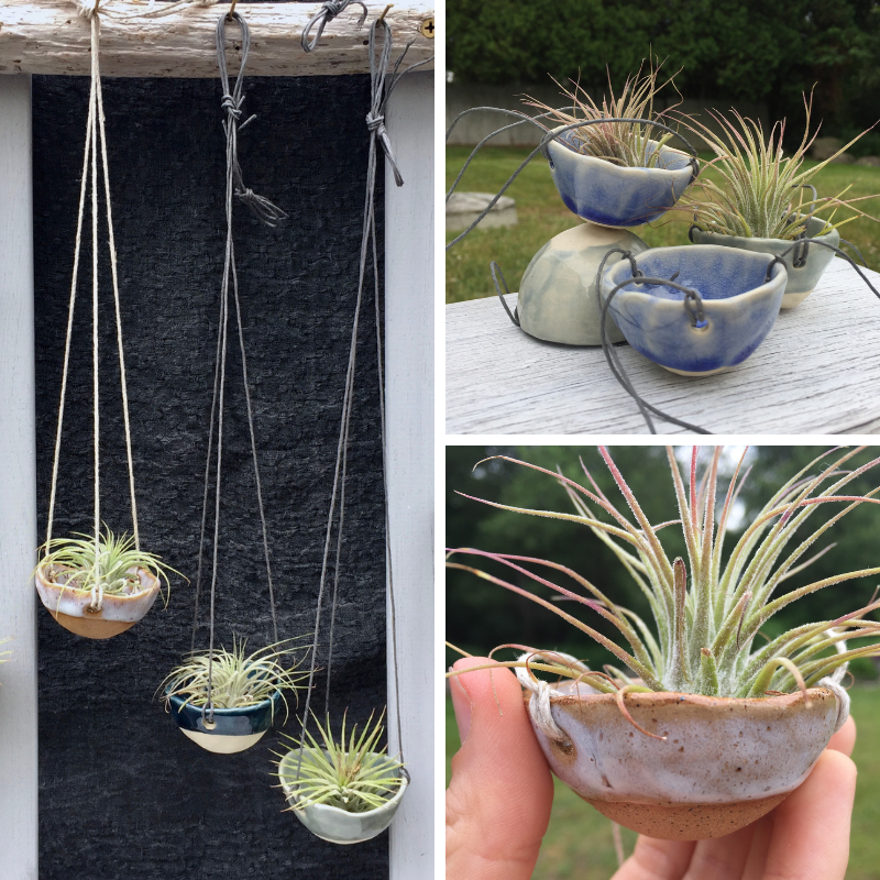 Functional pottery really appeals to me. I like when the things I use in my daily life are also pieces of art. I love having plants and flowers in my apartment, so planters, mini vases, and hanging air planters have become some of the things I make the most often. I live in a small apartment, and that inspires a lot of small pots – things like bowls and dishes for holding jewelry or salt, incense burners, and tea-light lanterns. Right now I’m enjoying experimenting with more raw clay and finding glazes with organic colors and textures.