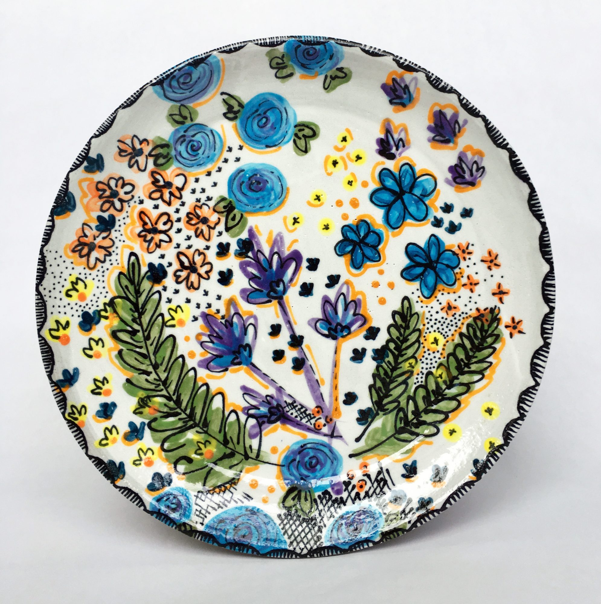 My work focuses on surface decoration — color, pattern, and texture all play an important role in my pieces. I am definitely inspired by the kids I work with and how they can create in such a loose and fun way. A lot of my work looks like a bunch of doodles and sketches coming together to create something beautiful. As I previously mentioned, art was important to me at a young age and I try to recall that carefree spirit of making that I had as much as I can.