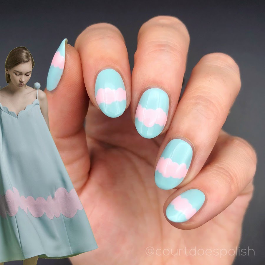 It took a lot of time and research to both get good at learning to control nail polish as a medium (nail polish formulas can vary greatly when it comes to viscosity and drying time) and to figure out what tools and techniques work best for me. One of my biggest challenges can sometimes be an inspiration. That’s actually how I got into modeling my nails after runway looks – I was in a huge slump creatively and was browsing through the latest issue of InStyle and saw a gorgeous Christian Siriano dress and thought – wow, it would be really cool if I could replicate that look on my nails!
