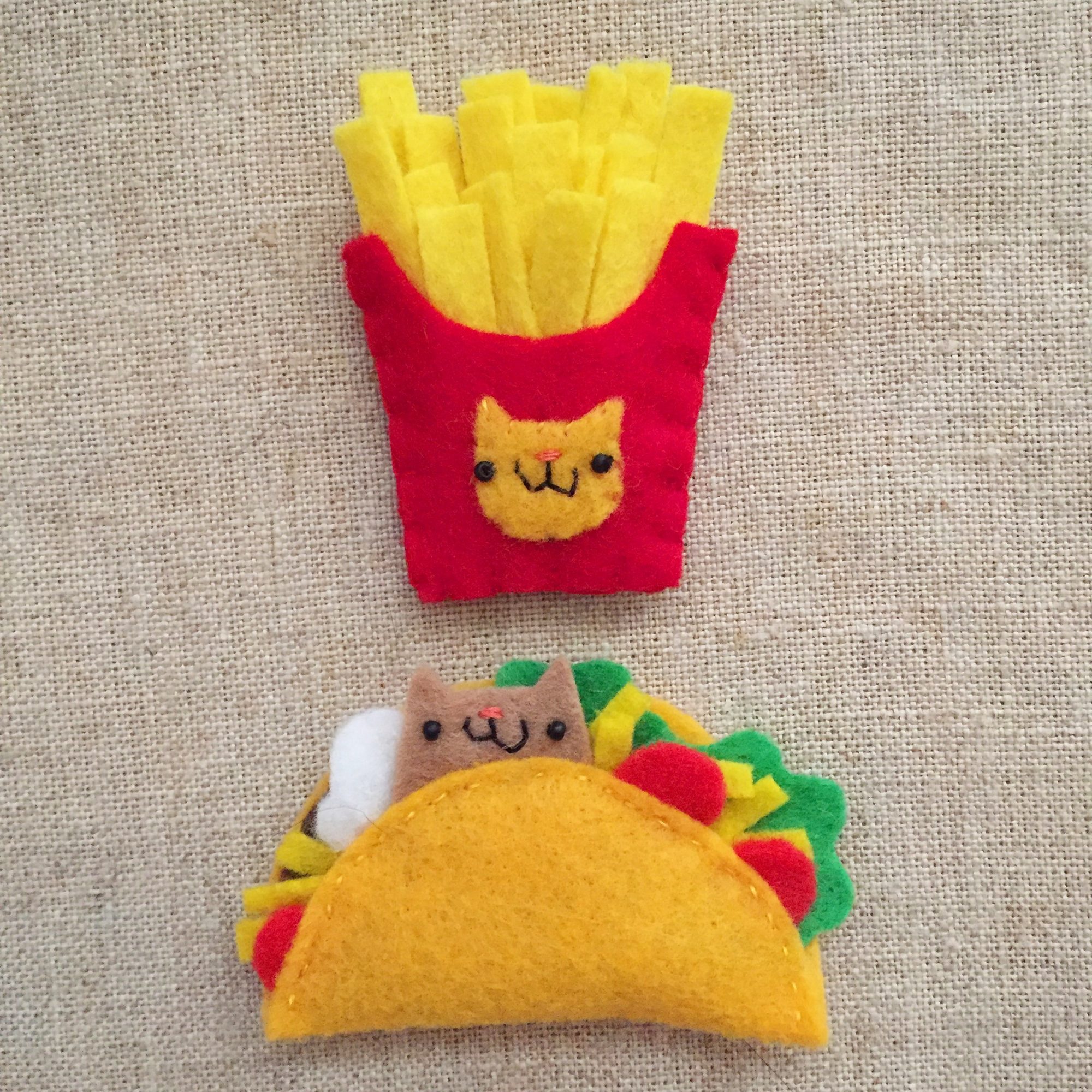 I make tiny adorable things! Lots of them. At this point, most of my work is either hand sewn felt — small accessories and more intricate art pieces — or small paintings and illustrations, which I apply to paper and home goods, fabric and more. About 95% of my work is probably plants, animals or food — or a combination of these things — usually with faces and almost always cute.