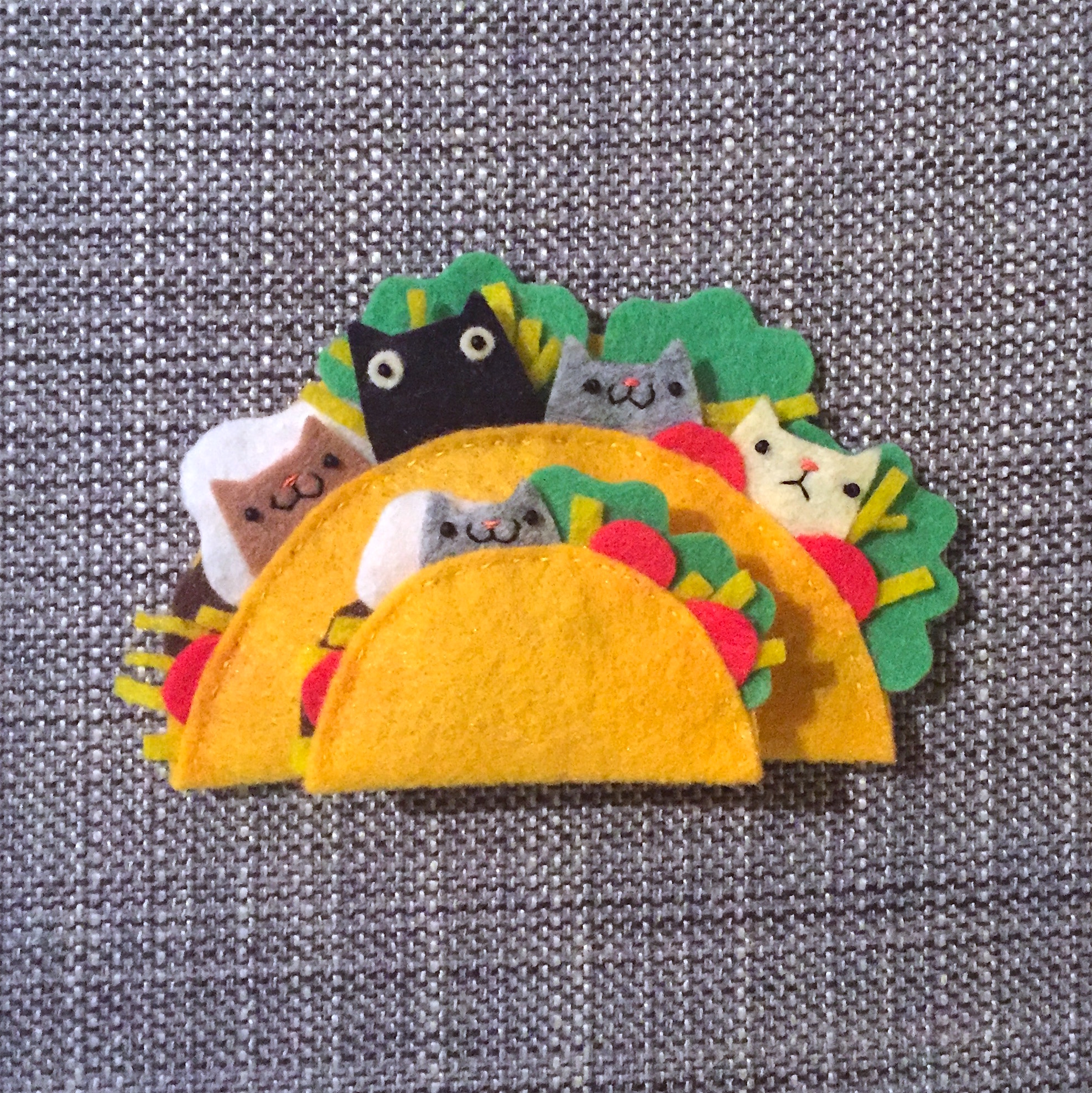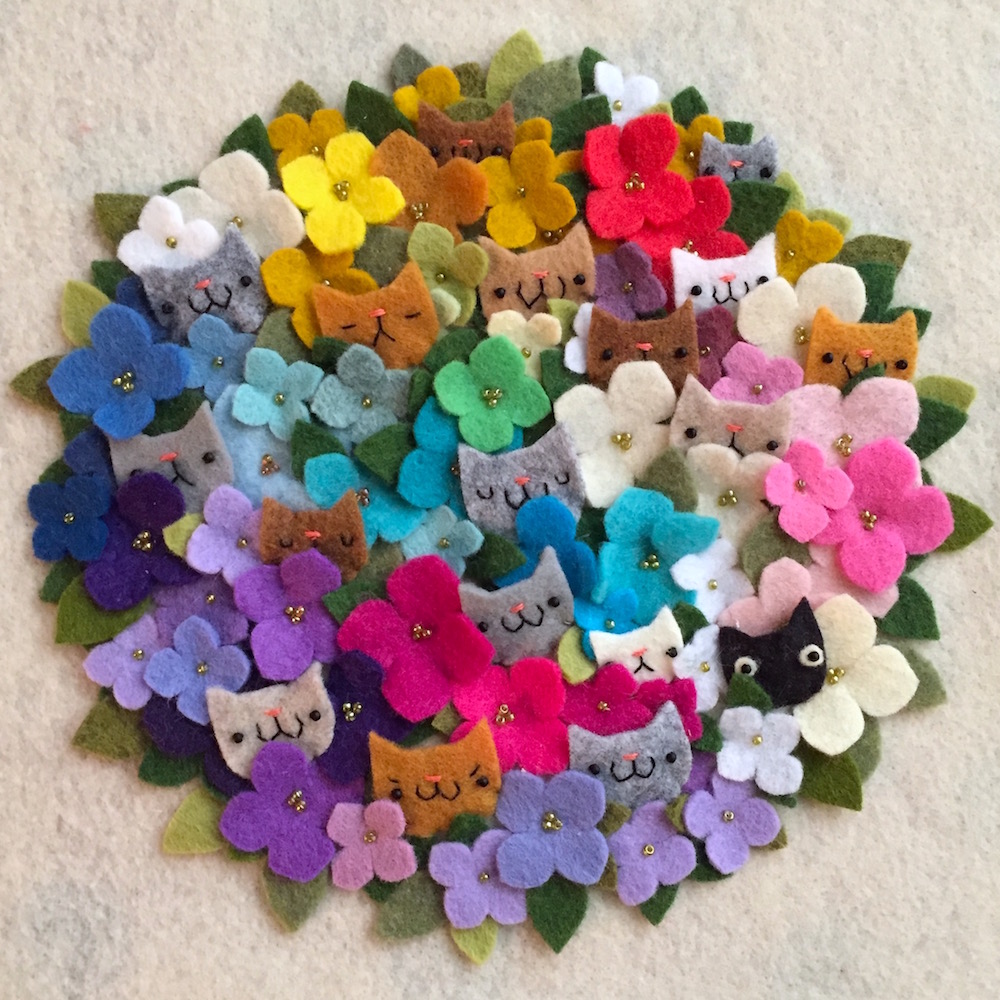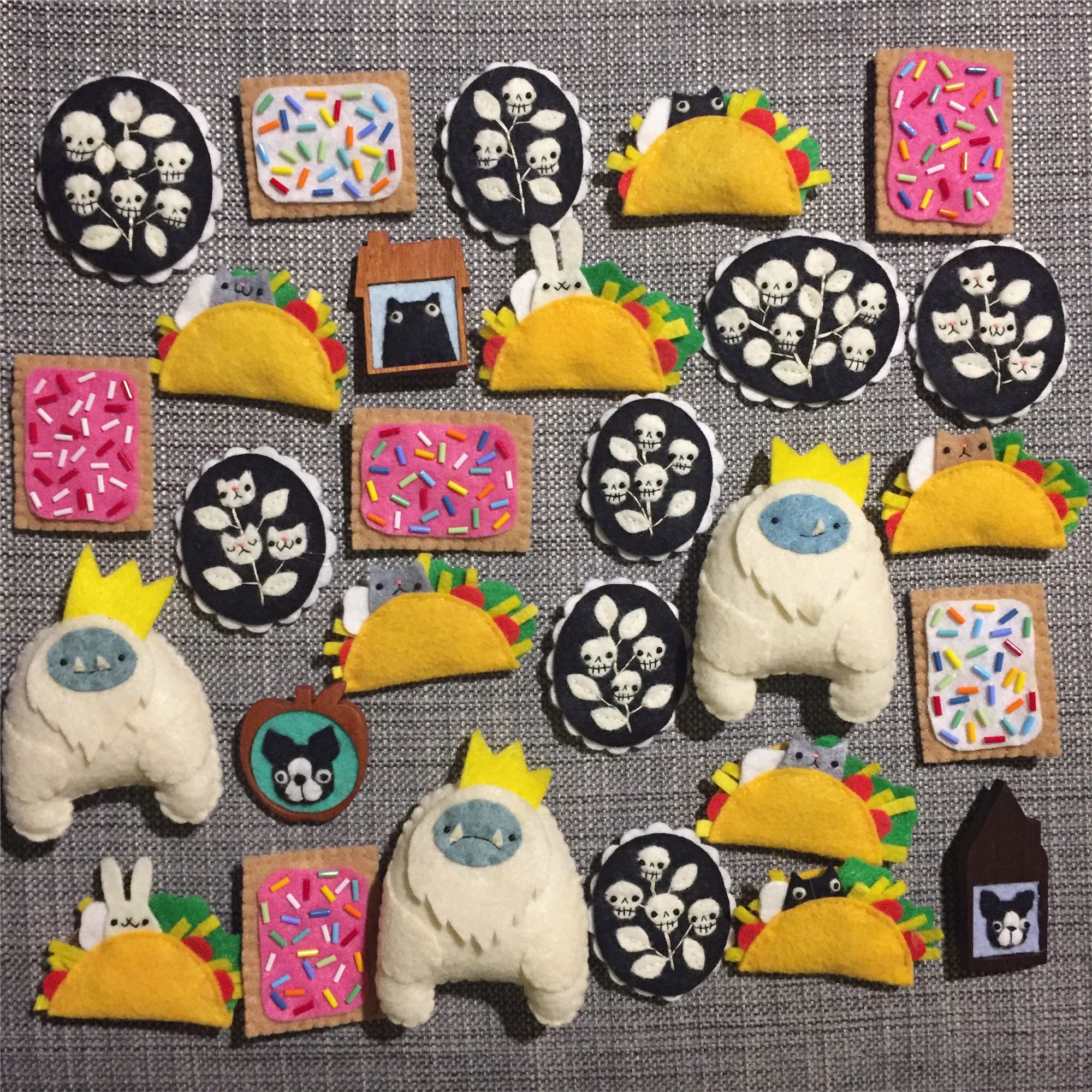 I think a lot of people probably recognize my yetis and sasquatches, toast and cat tacos. And, I definitely make a ton of things with cats on them. But, I’d like to think I’m known for the detail of my work and also for how happy it generally is (even when the faces are grumpy). I think of my sewn work as both simplified and detailed: the designs are often streamlined, but there are lots of tiny pieces and details embedded within the seemingly simple appearance. And my illustrations are similar: seemingly cute and clean, but also highly detailed and with a lot of work behind the simple.