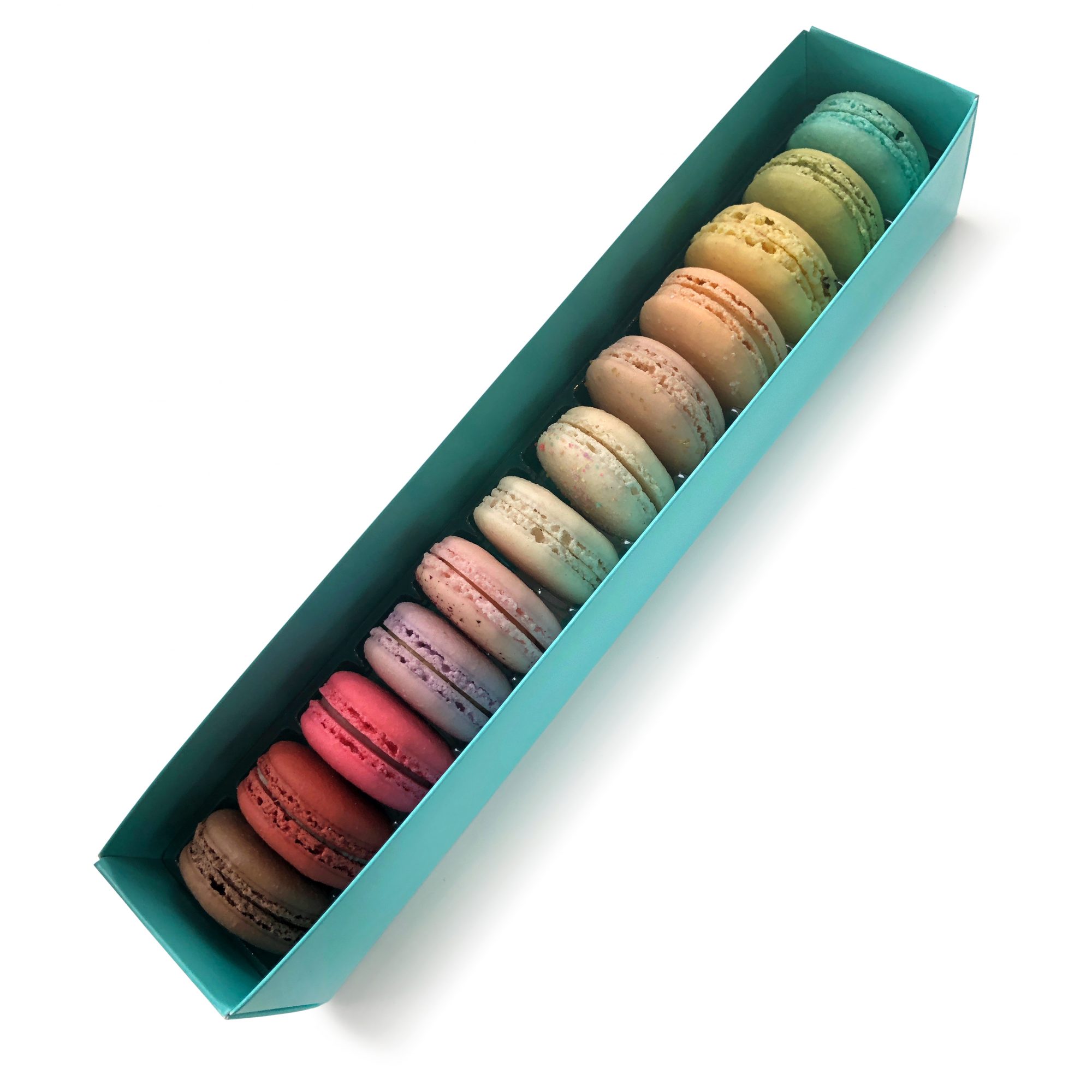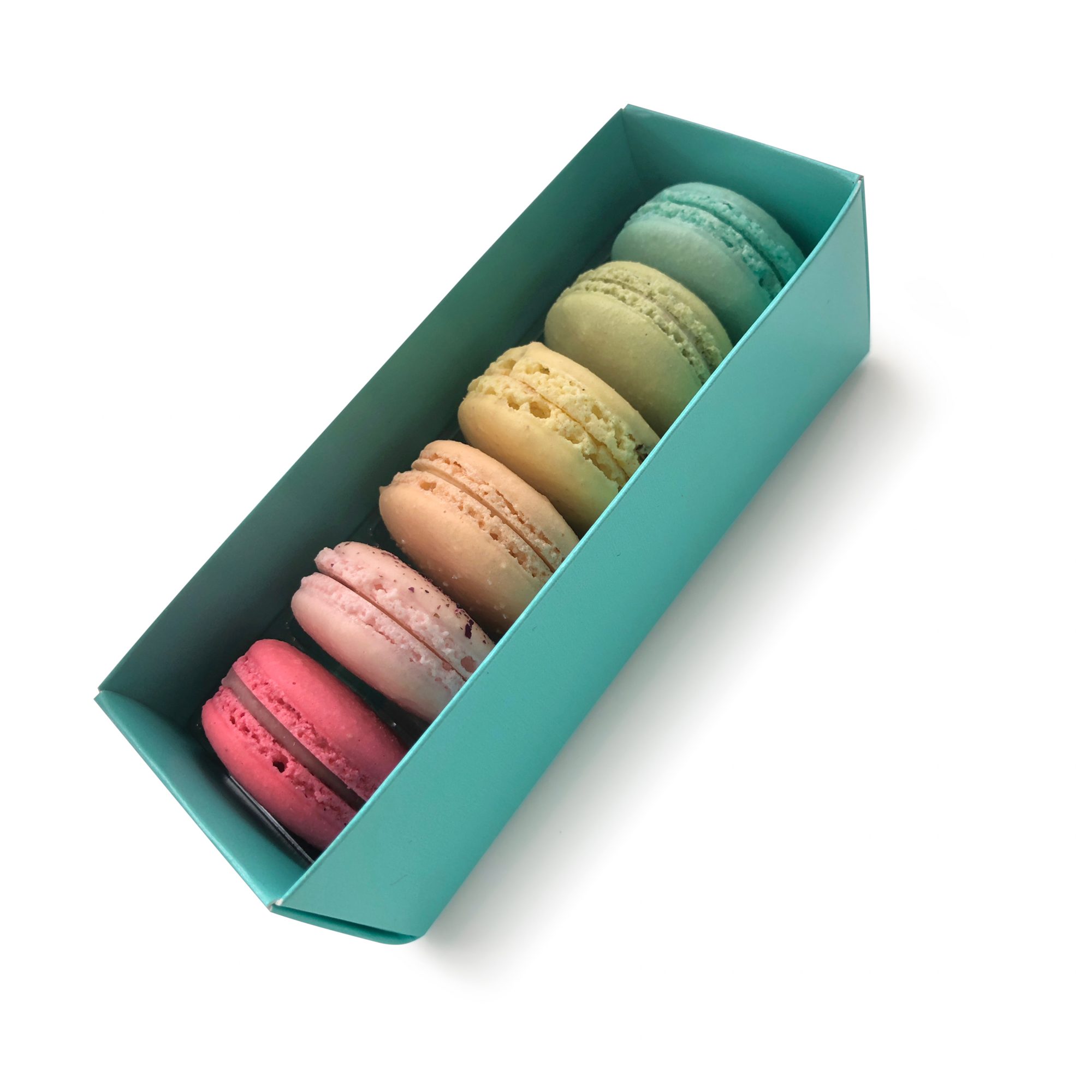 We specialize in French macarons. Our macarons are fully customizable, with a variety of flavors, colors, and can even be branded with full-color graphics.