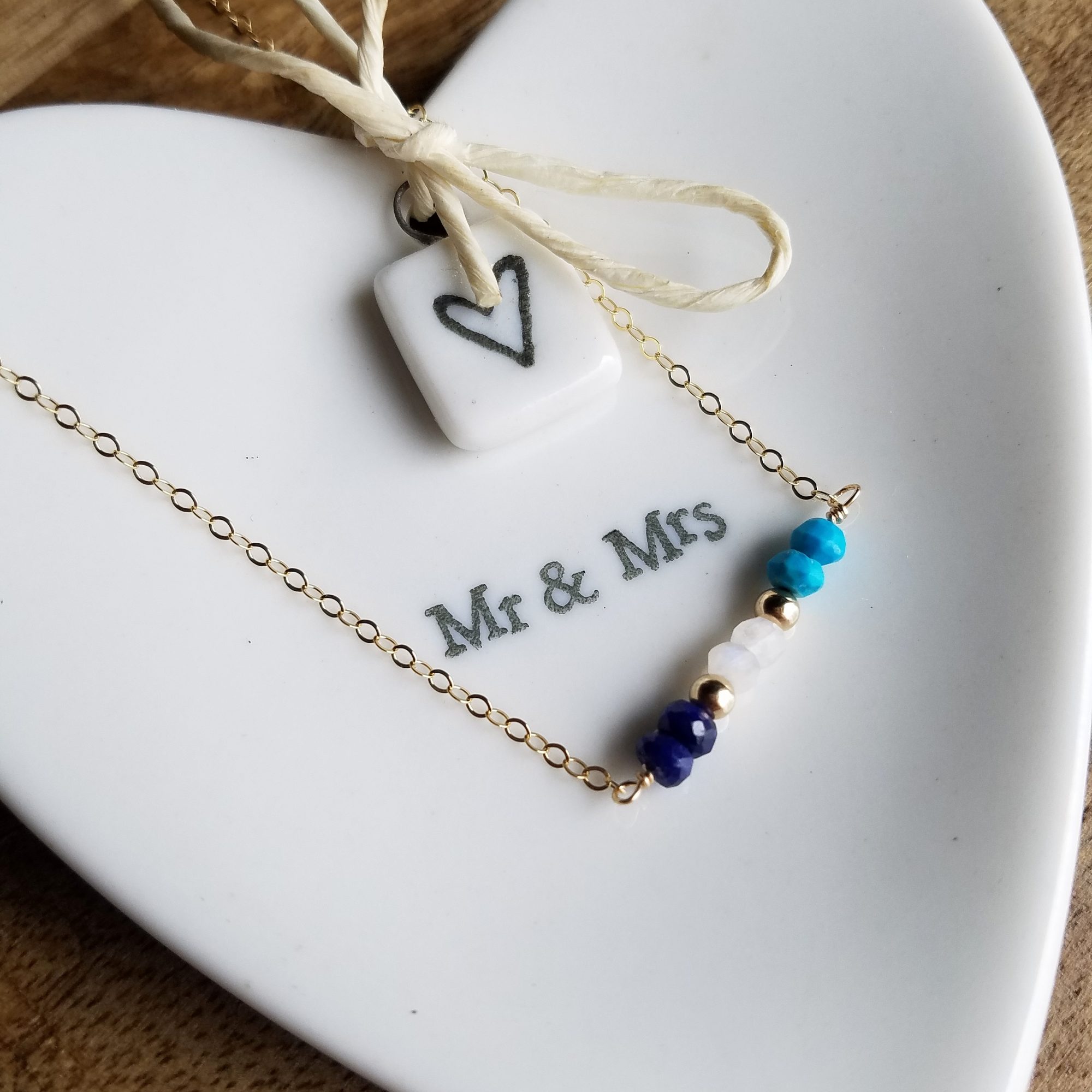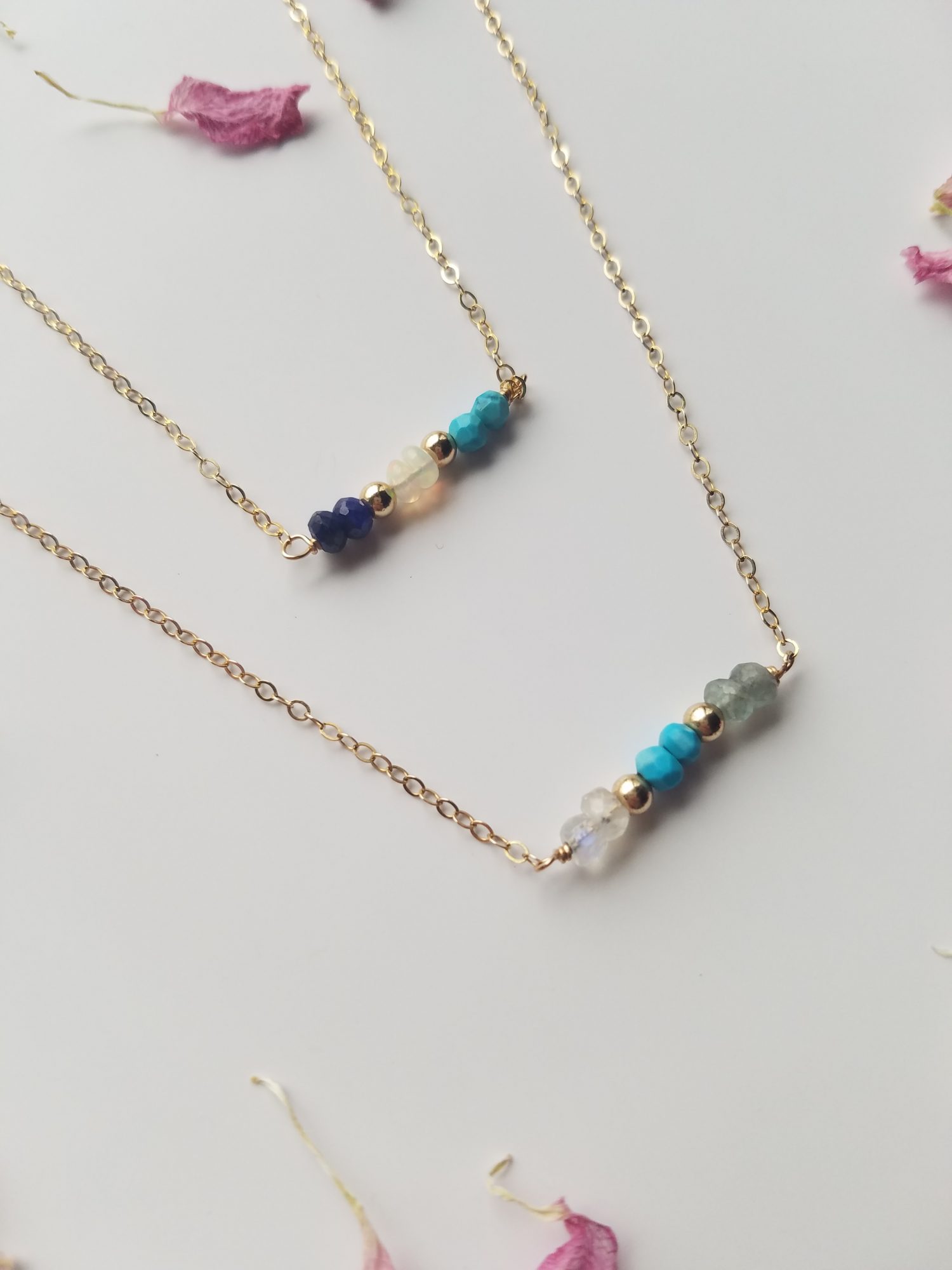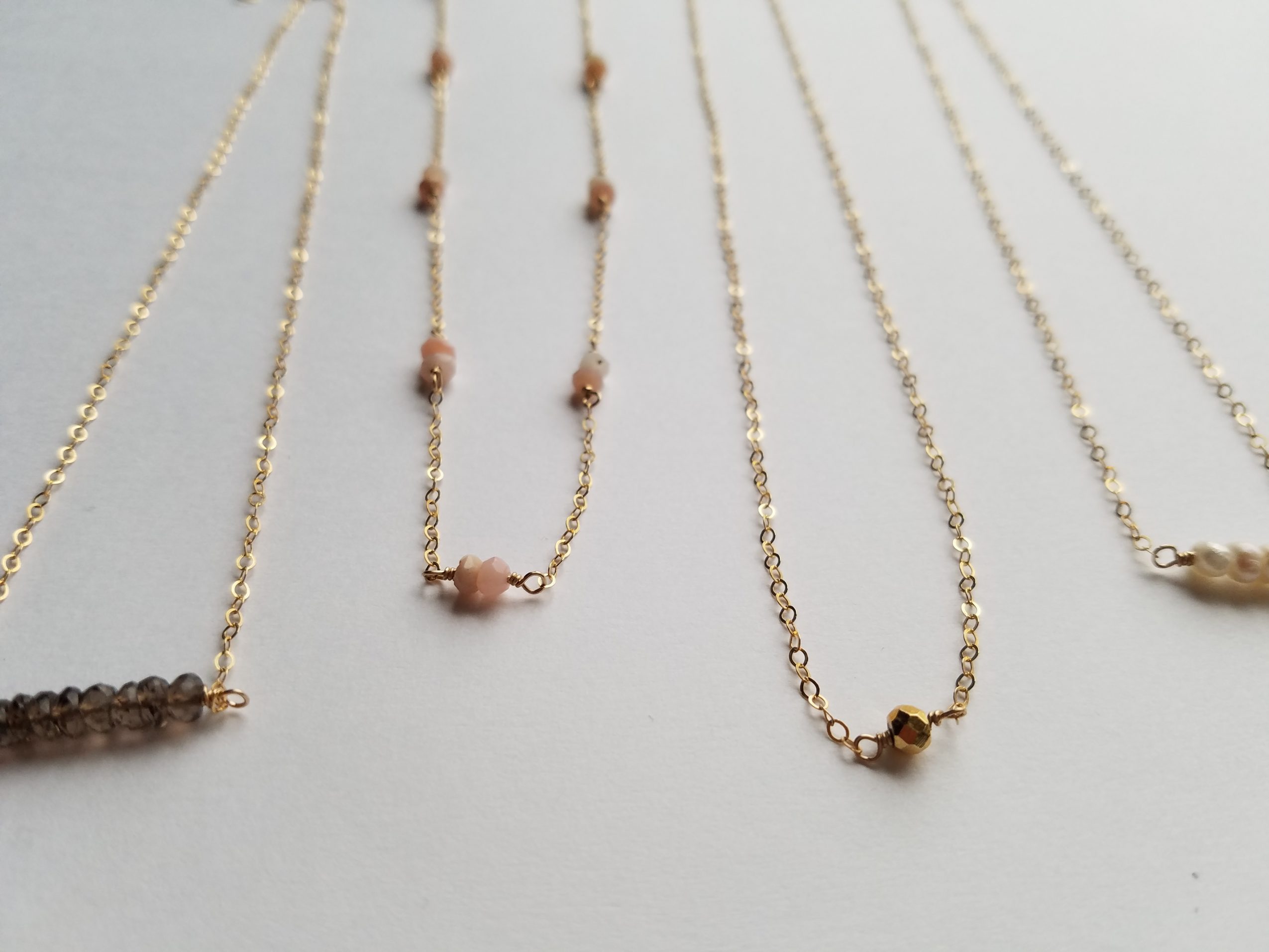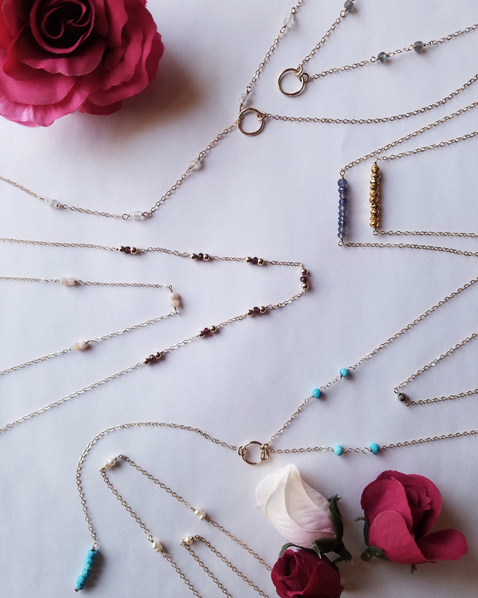 The line I created was made out of my personal want for something more out of my jewelry. I wanted very simple designs that could be worn by anyone from day to night but I wanted them to be more than that. I want these pieces and gemstones that I’ve incorporated into my jewelry to be subtle reminders of what your daily, yearly and/or lifelong aspirations are. I also recently created a personalized line where I take the gemstones of your loved ones whether they be children, best friends, parents, etc and build a personalized necklace made just for you. Meant to remind you of who your inspirations are as you go through your day to day life. Symbolizing those people that make you want to bring out the best person you can be. I’m proud to bring meaning to the jewelry people wear, I’m proud to offer personalized designs. I love being able to connect with my customers and make pieces of jewelry that they’re proud of. I hosted my first charity month in March where I donated a portion of my sales to a local organization, Special Olympics of Rhode Island, I look forward to hosting many more events like that where I can give back to my community.