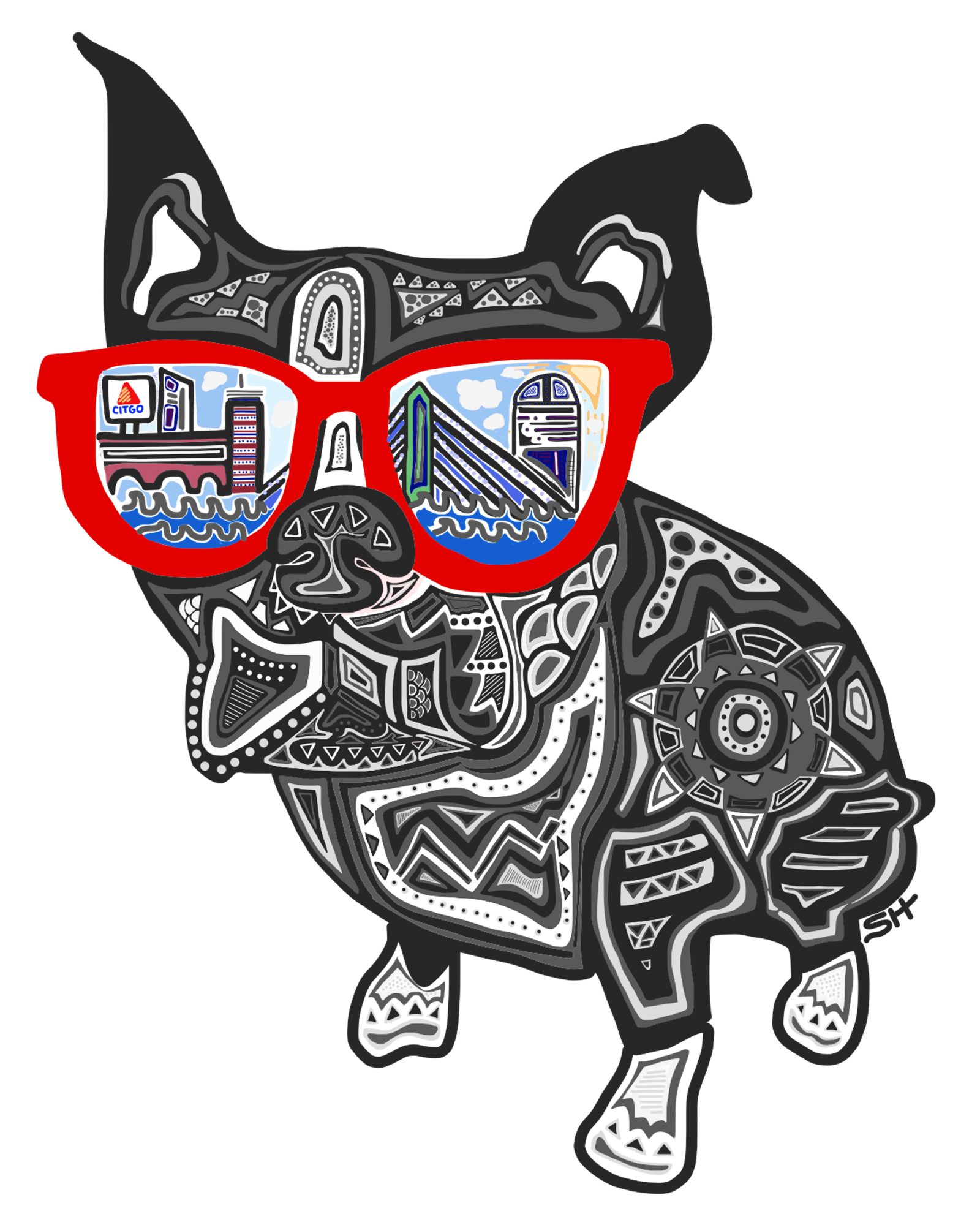 I have always been interested in art and I started drawing as soon as I could hold a pencil. I took various art classes growing up and continued to take them throughout my high school and college careers. I had never considered selling my work or making art a full time career until after college, when I had ironically stopped doing art as much. I had taken a break from it when I was asked by a couple of friends to do some custom paintings. I agreed to do the projects and after posting the finished results to social media I had more requests come in and pretty soon I had a good amount in my portfolio. Soon after that, I decided to try to sell some original work that I had lying around and took it to a local gift shop in Hudson MA called Serendipity in Hudson. On the very first day, I had dropped off my paintings I made a sale. That’s when I decided I could really do this, and I have been creating and selling ever since. My art has taken me in many directions, but the most notable one so far has been the number of custom pet portraits I have completed. I began drawing people’s pets in 2016 and I have since drawn over seventy-five different breeds of dogs, cats, hamsters, and more. I have been commissioned for a lot of other subjects, but I find animals to be the most fun to draw! Right now, I have an Etsy site where I sell my prints as well as an online store on my website where I sell apparel and other things. You can also find my prints and products in six local shops – the most conveniently accessed from the city is 4GoodVibes in Somerville MA.