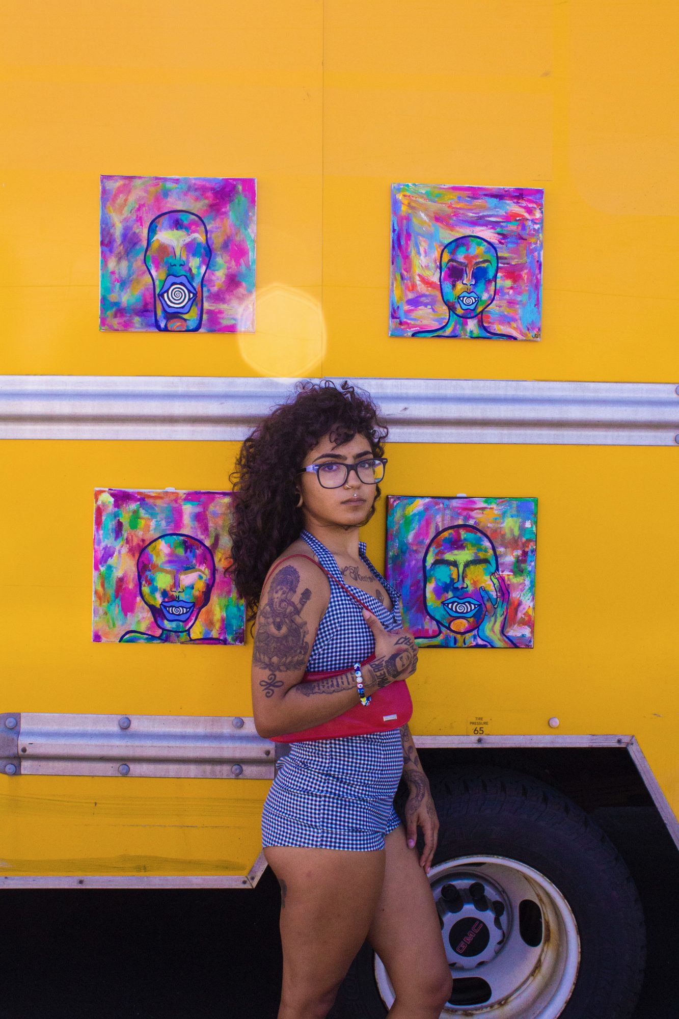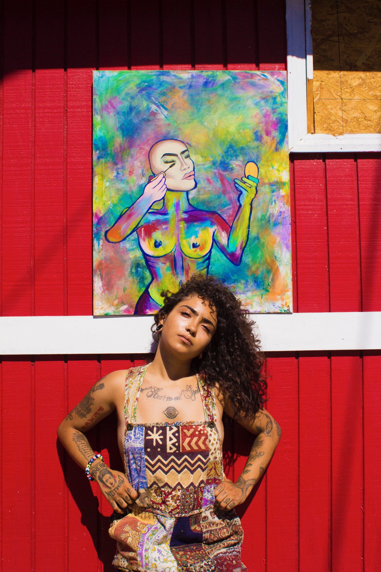 I’m an artist and I specialize in painting. Most of my paintings are done with acrylic paint, but I also use watercolor or oil. l like putting my energy towards different styles. I paint portraits, self-portraits, landscapes, abstract or whatever I feel. Although I can do many different subjects, I’m known for my vibrant paintings with particular concepts/messages. I’m most proud as an artist to be able to have beings who support the expression of my perspective on the world we live in. I am very grateful to be given endless opportunities from others and the universe to express myself. What sets me apart from others is my mindset. I try to understand and learn as much as I can from the perspective of the earth and the universe in order to develop my own personal philosophy. With what I learn, I just want to provide a space where people can come and apply their life and learn more about themselves. Every day, I try to apply my own philosophy or understanding to new things I come across in order to learn more and grow.