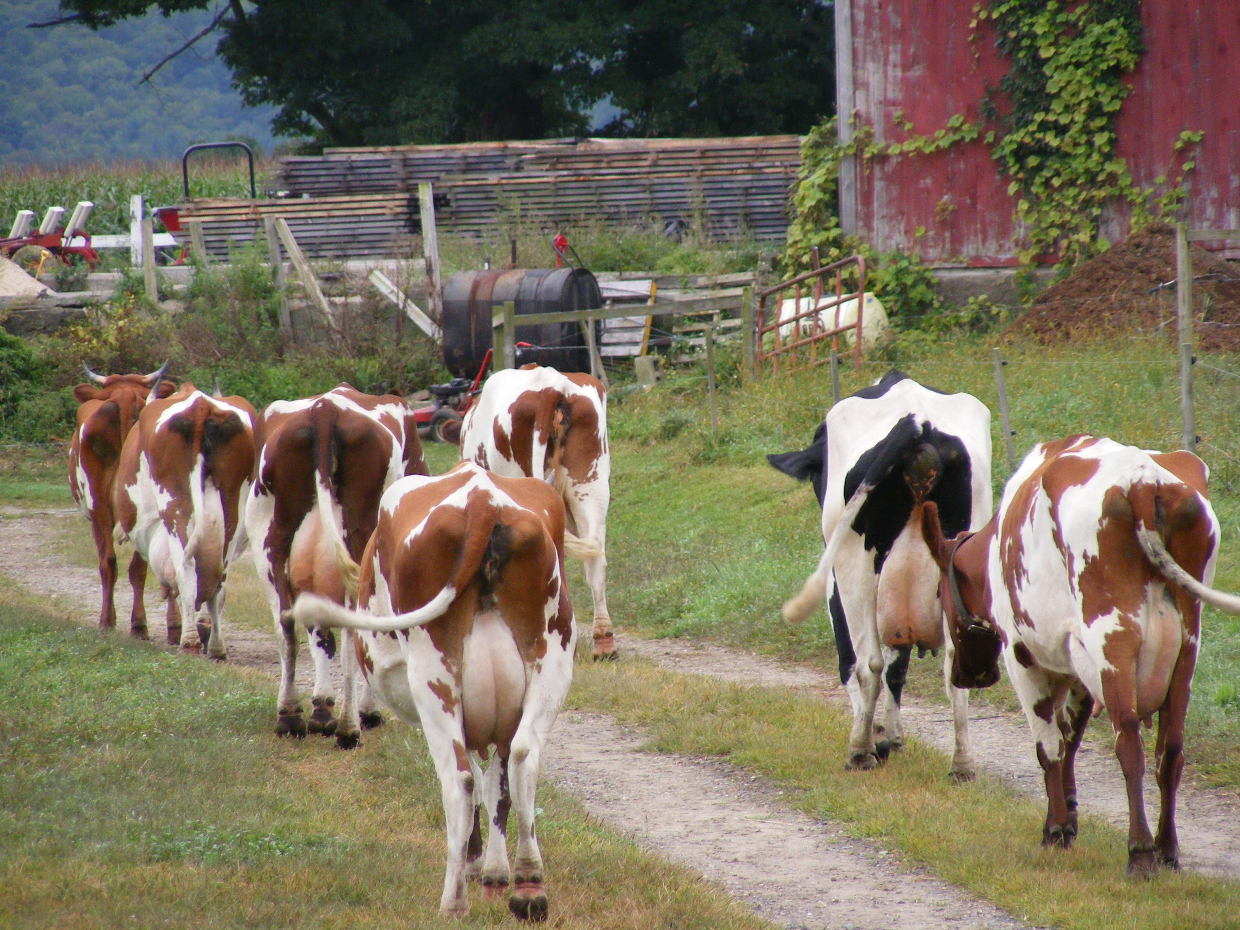 There was a time in our country when every farmer milked cows. Maybe two, maybe ten, maybe even 25. If they owned even a scrap of land, why would they not keep such a generous, giving animal? One cow can take mere grass – the simplest of things to grow – and turn it into plentiful quantities of milk. And not just milk on which children thrive, but yogurt and kefir, and multitude of cheeses that can be stored indefinitely. And even more precious than milk, is the cream that can be made into butter, and ice cream, and sour cream. Such bounty, such riches, milked from the pure rays of the sun. Here is a commodity with universal appeal, a perfect food, a staple that every family will always need and crave. I have visited many old barns that remain standing in my small town of Gill. They are often unused – if they still stand at all. Generally the interior is uninhabited by animals, except mice. The old barn sits, accumulating broken lawn mowers and snow blowers and other rubbish of our modern age. But underneath it you can find the signs – where the stanchions hung, where the cows entered and exited, gutters in the floor where the manure was shoveled out, chests where a stream was once diverted to chill the cans of milk, hay lofts with ancient hay still moldering across the floor. Invariably I see the faded remnants that prove beyond a shadow of a doubt that yes – this farm kept cows, and this one, and this one. Just as certainly as they kept chickens and grew corn – they kept dairy cows.m