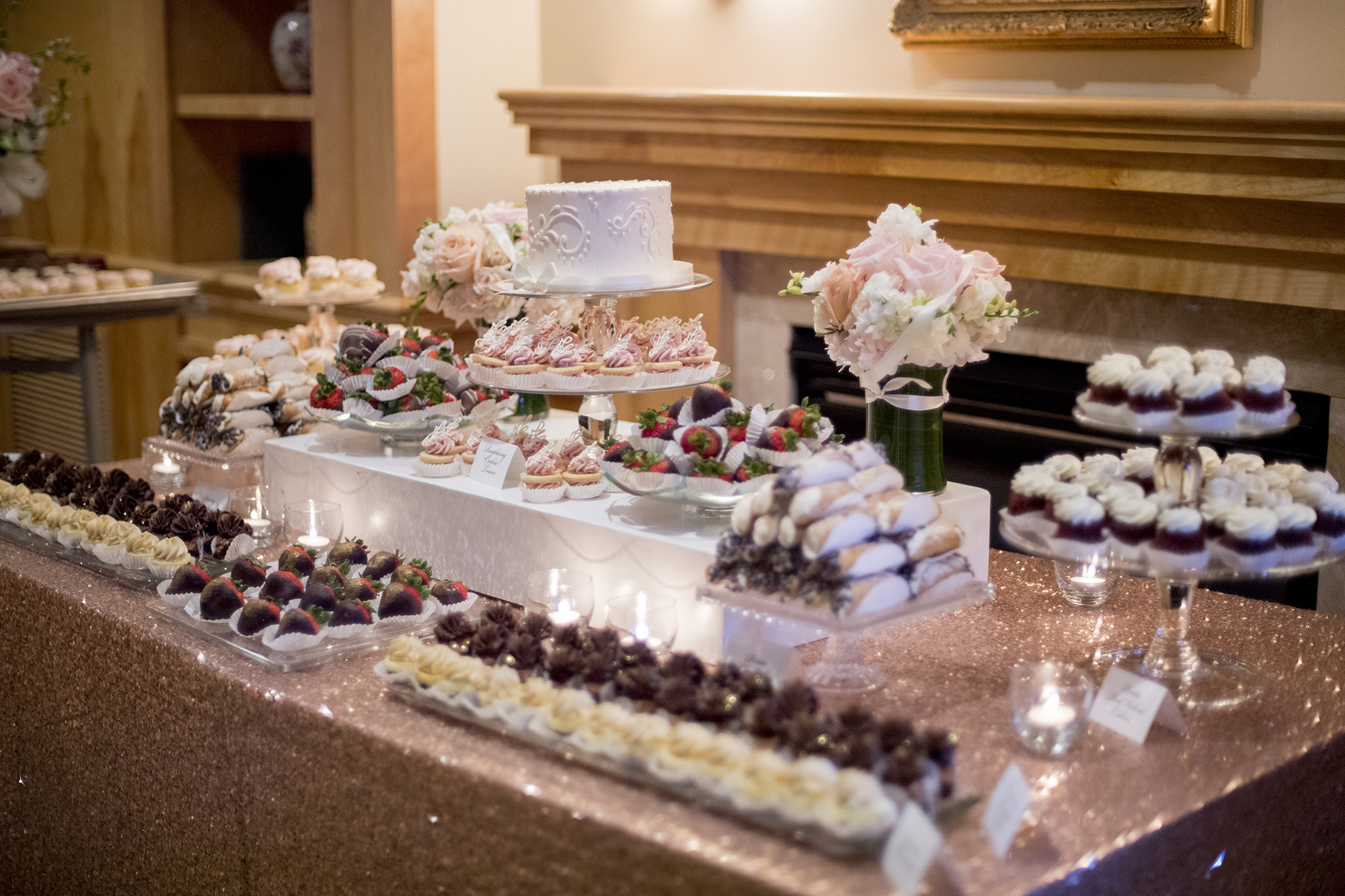 Scott Zuehlke Photography – Pink Sequence Linen Dessert Table Photo