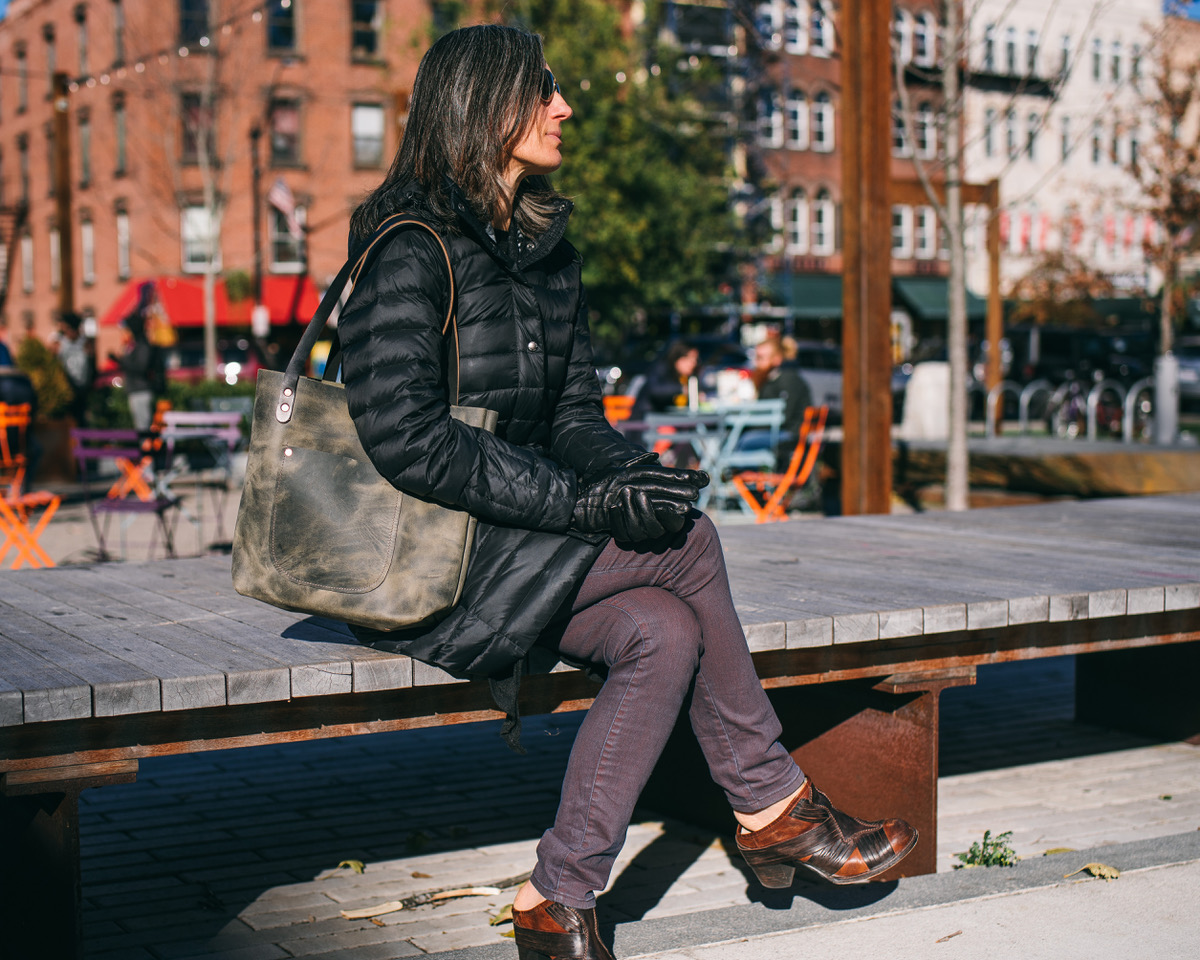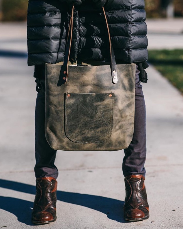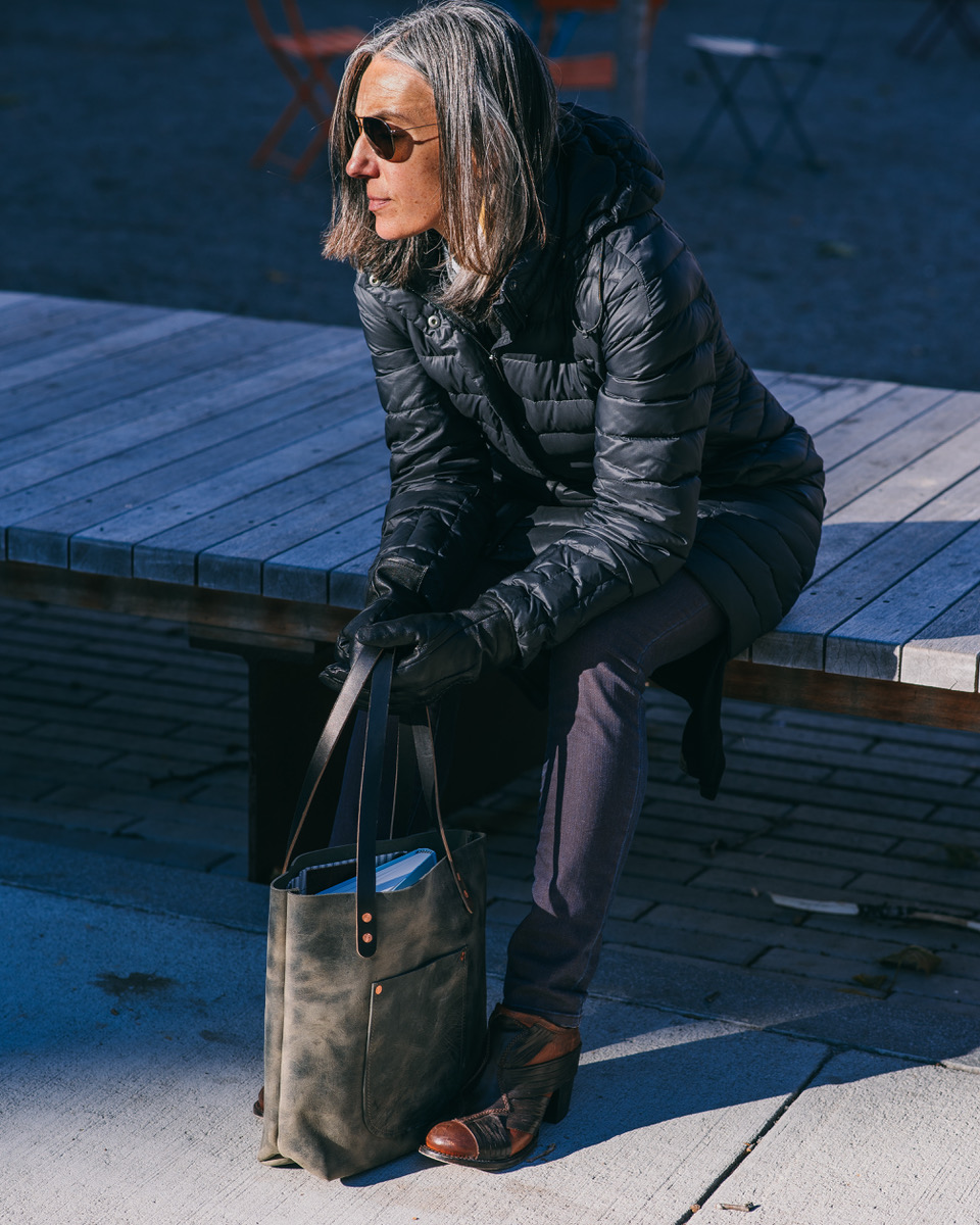 I was raised on an organic farm in Western Massachusetts, our primary crop was cut flowers. As a kid I worked alongside my parents harvesting and assembling fresh floral bouquets to sell at markets. I really resented having to work while all the other kids seemed to be relaxing by pools or headed to the beach but I believe working with the beauty of nature at a young age developed in me a heightened aesthetic for natural design. I was always a maker from a young age; marbling paper, making hand bound books, sewing my own clothes. I began my career as a crafts person first working in clay for many well know potters such as Frank Willett, Luisa Baldinger, of Sante Fe New Mexico, then, Jane Hillman and Michael Cohen of Massachusetts. Over time I developed an interest in jewelry, gathered some skills in silversmithing, and worked for Carla Caruso in her fine jewelry studio. Before my twins were born in 2007 I created my own lines of work and sold them in galleries and craft shops. Over my career as a crafts person I have worked in metals, wood, clay, and textiles. Sometimes for myself, sometimes for others. Leather is my new favorite. As I cut, stitch, and build my designs I find a magic in leather that feels like a gift because it is so close to nature. Just as wood tells the story of a tree a leather hide holds the story of a life on the range. Leather carries with it a variability that fiber doesn’t, there are insect bites, scratches, and scars that must be incorporated into the design of a bag. Sometimes a well place hole and patch can become the focal part of a piece.