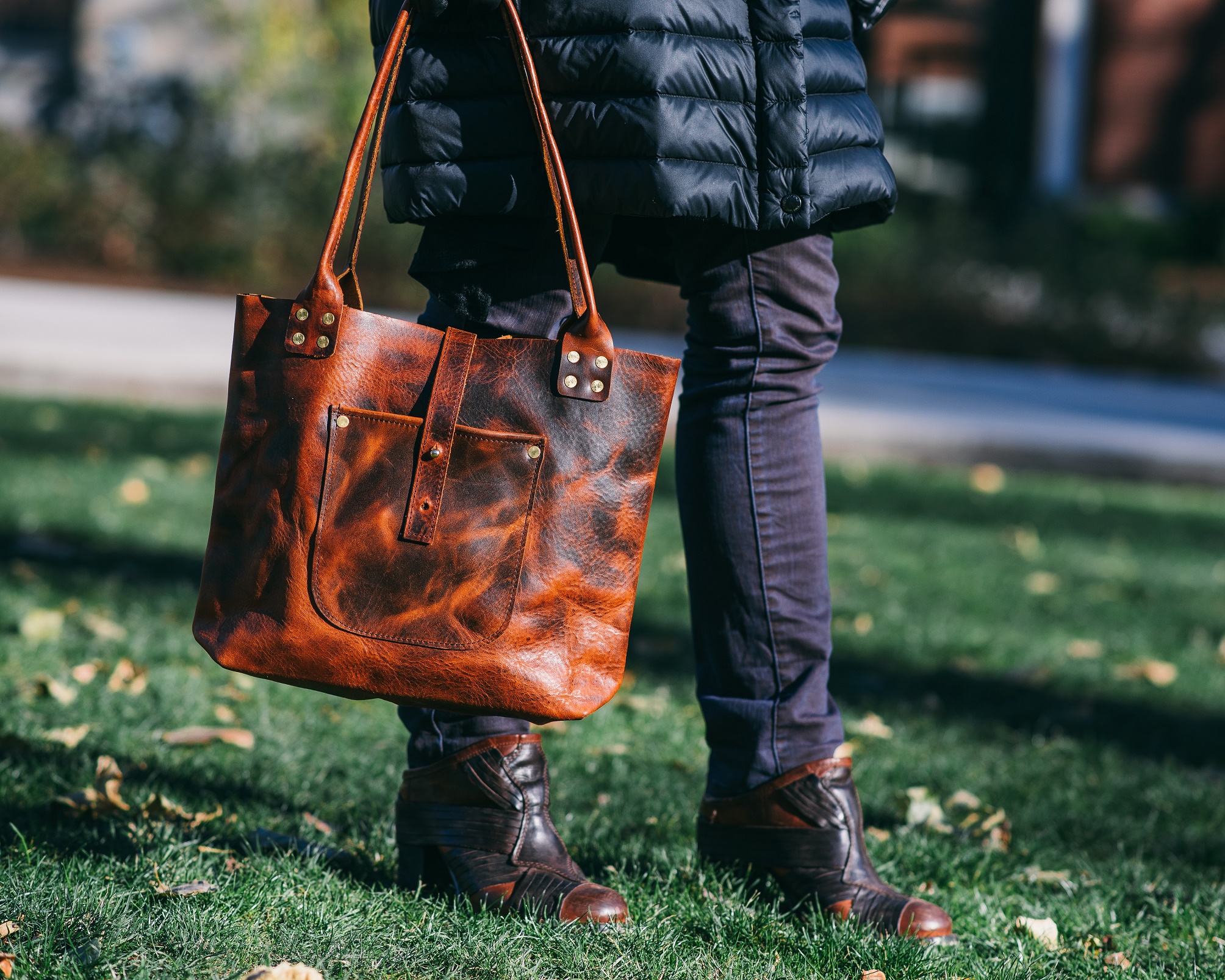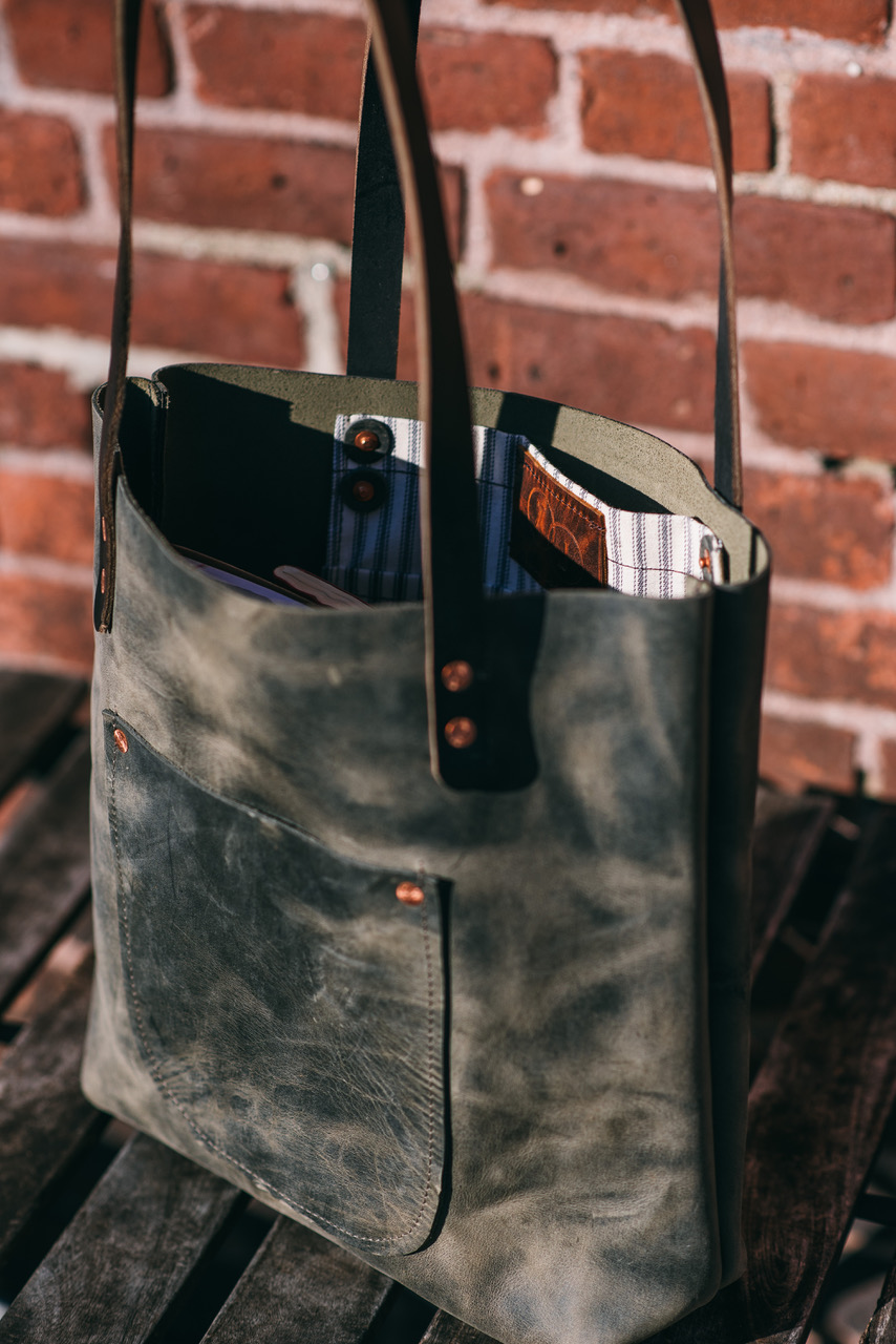 Zoe Johnson Hand+Made is a small batch studio that creates one of a kind leather tote bags, cross body bags and purses from full grain leathers that speak to form and function. Designed and hand stitched by Zoe Johnson in her Western Massachusetts in limited quantities each piece is original and unique.